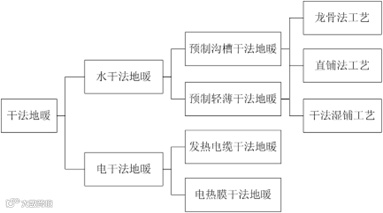 干法地暖是指地暖绝热保温层,在厂预制化一体生产,现场直接拼接,无需回填混凝土固定水暖管道,而是直接在干法模块上面铺设面层的一种地暖施工的方式。根据干法地暖的工艺不同,干法地暖又可分为以下几种:
