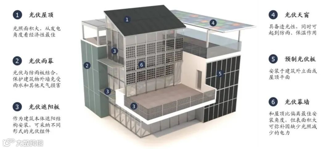建筑附加光伏 (Building Attached Photovoltaic):附着在建筑物上的太阳能光伏发电系统,也称为“安装型”太阳能光伏建筑。它的主要功能是发电,与建筑物功能不发生冲突,不破坏或削弱原有建筑物的功能。