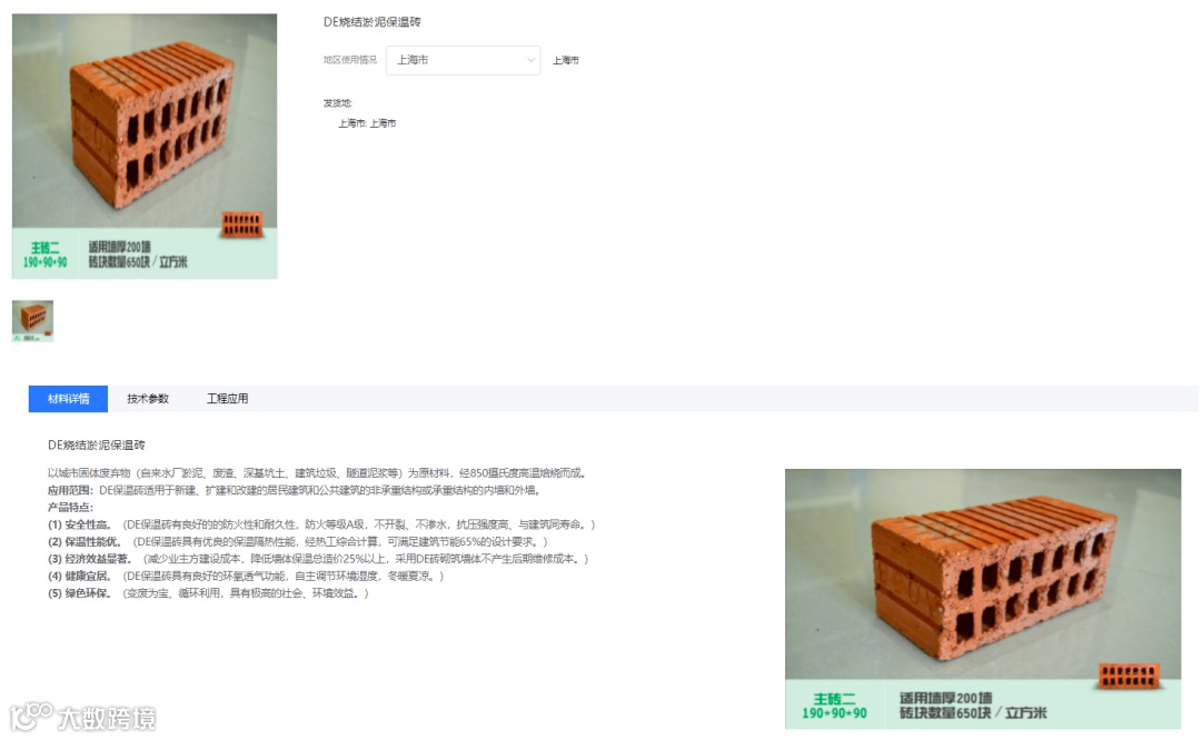 点击查看详情或者相关案例即可跳转至绿材在线界面,查看材料详情、技术参数及标准参数来源。