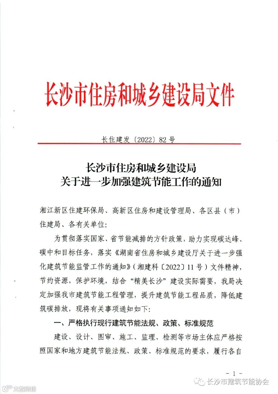 导读:长沙市住房和城乡建设局关于进一步加强建筑节能工作的通知