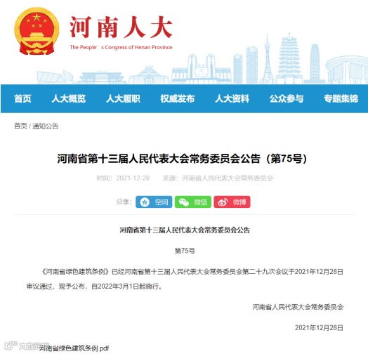 河南省第十三届人民代表大会常务委员会第二十九次会议审议通过《河南省绿色建筑条例》,该条例明确规定所有项目必须提交建筑碳排放计算报告,且该条例于2022年3月1日正式实施。