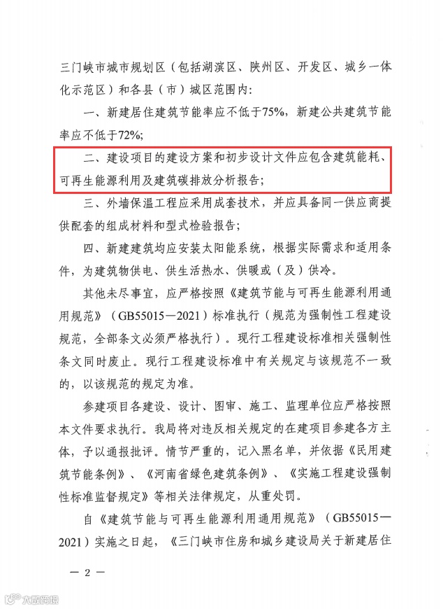 三门峡市住建局发文,不同建筑阶段需要进行碳排放计算并提交碳排放计算书,并且强制执行。