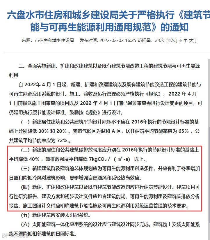 六盘水市住建局发文,不同建筑阶段需要进行碳排放计算并提交碳排放计算书,并且强制执行。