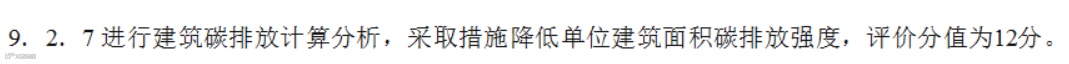 《绿色建筑评价标准》9.2.7条文要求,建筑进行碳排放计算可以得到12分的额外加分。评价方法中,只需要提交碳排放计算分析报告即可。