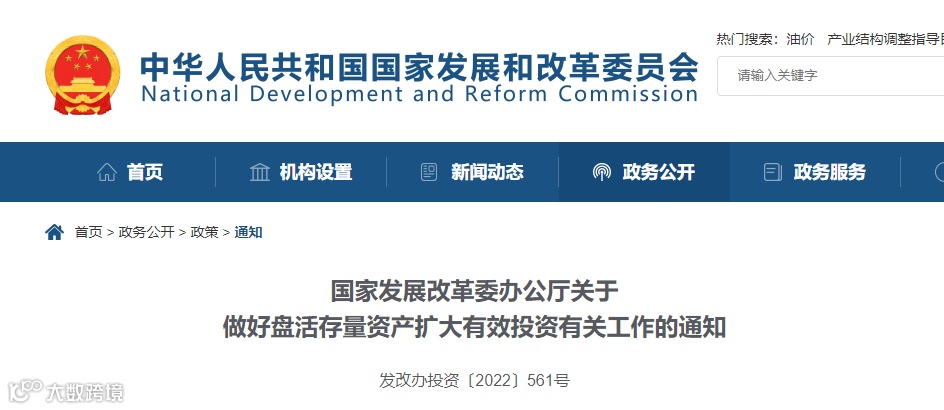 近日,国家发改委发布关于做好盘活存量资产扩大有效投资有关工作的通知。