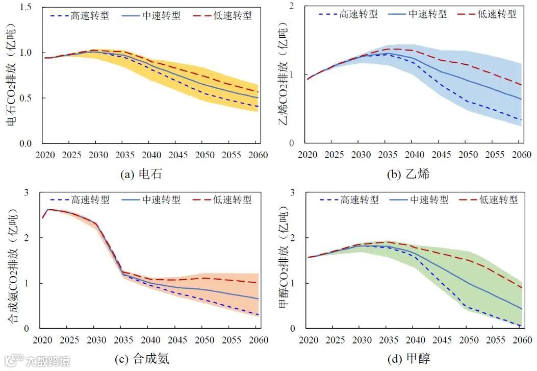 图3 2020—2060年各行业CO2排放路径(以中需求—高速转型—长平台期情景为例)