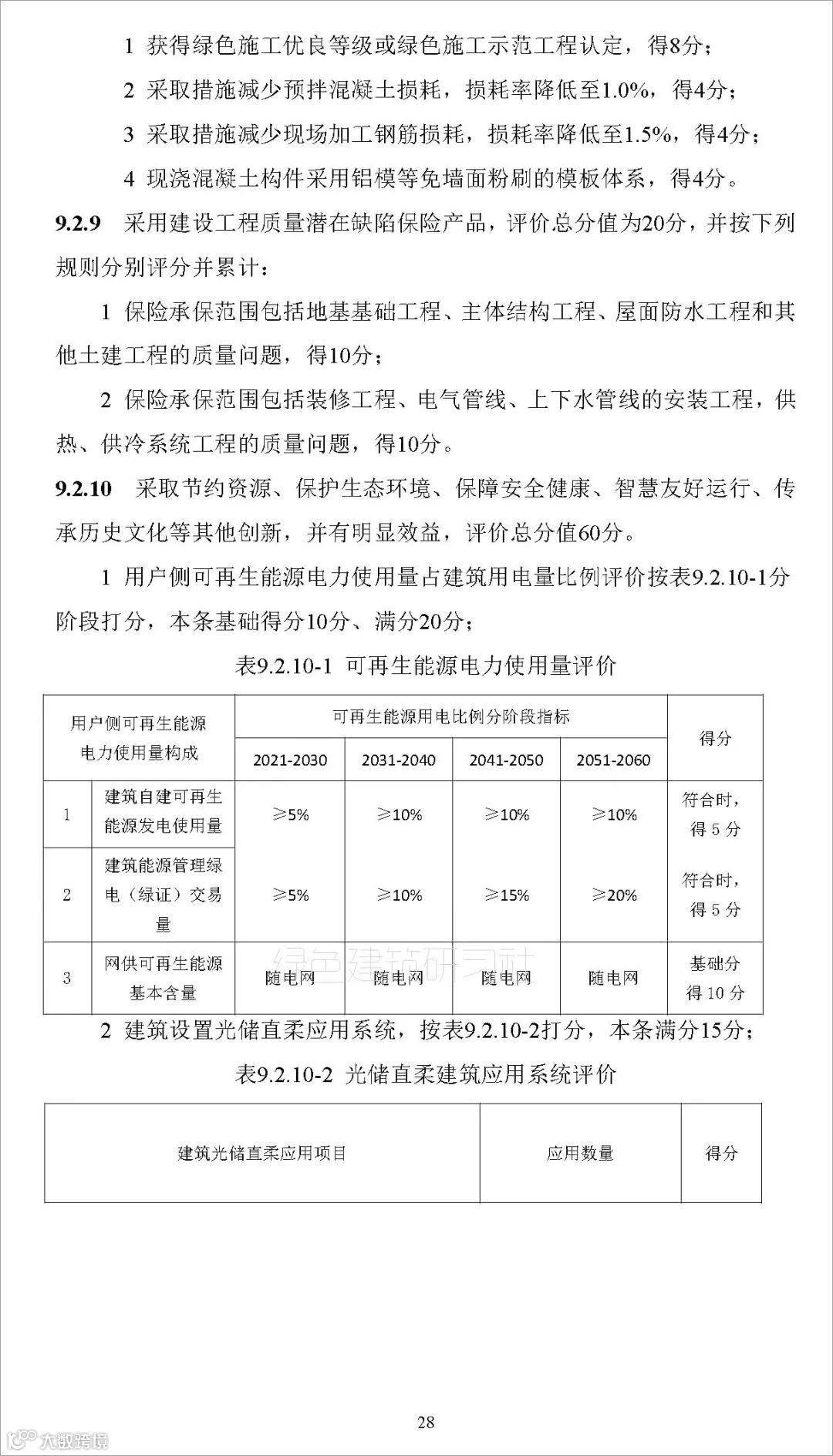 单体或区域项目在超低能耗、近零能耗健康等方面进行了实施,评价总分值为10分