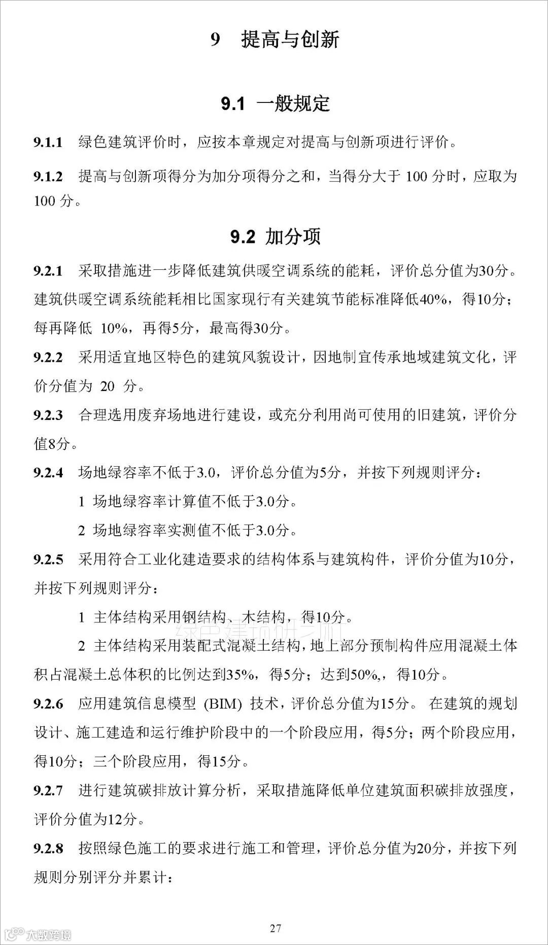 《绿色建筑评价标准》“提高与创新(加分项)”部分提出: