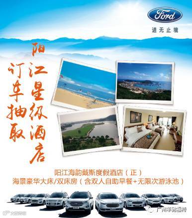 即日起-7月31日,只要亲临广州华驰订购任意车型,即有机会抽取阳江星级酒店房券,暑假出游不用愁,豪华海景房等你哟~