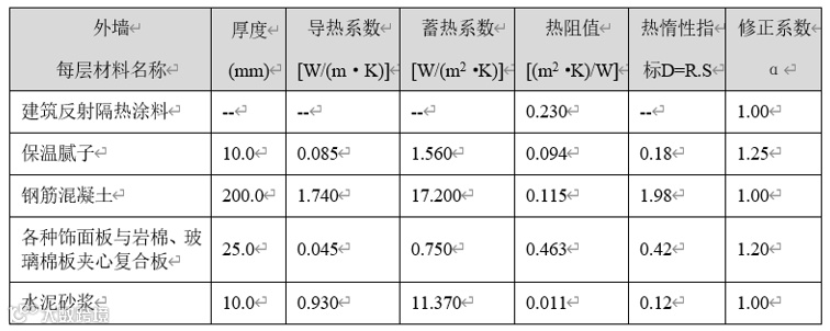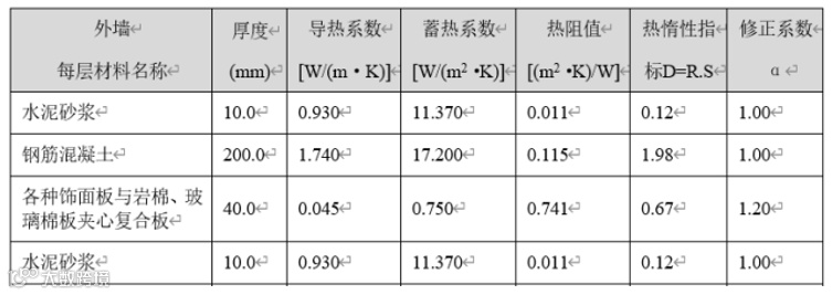 注:由于规定性指标进行计算时考虑等效热阻,权衡计算建筑能耗指标时又直接考虑太阳辐射吸收的影响,所以在权衡计算时,应当避免重复考虑,因此在权衡计算的时候外墙传热系数K应为未考虑等效热阻的K。