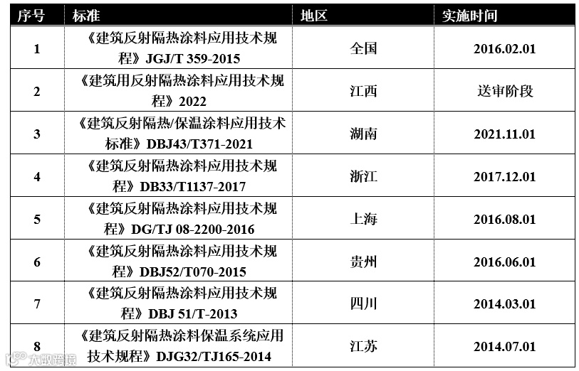 附表:各地目前已经实施使用的建筑反射隔热涂料标准一栏表