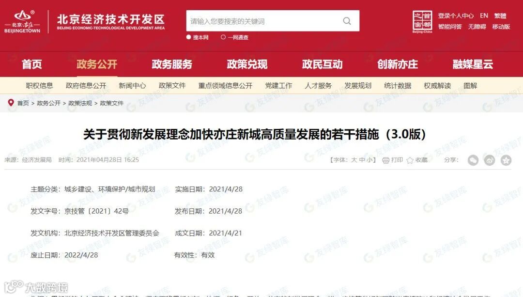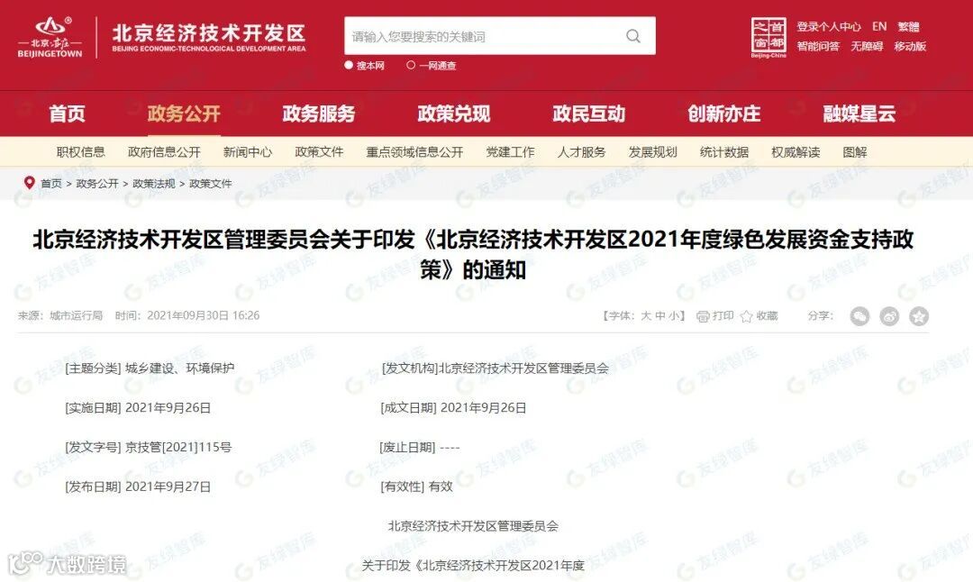 2021年9月30日,北京经济技术开发区管理委员会下发文件《北京经济技术开发区2021年度绿色发展资金支持政策(征求意见稿)》文件指出:对2021年获得碳中和认证的规模以上工业企业或获得碳中和认证的已纳入城市更新的园区一次性50万元奖励。(重点排放部分可部分厂房园区碳中和认证,其他单位需全部)。
