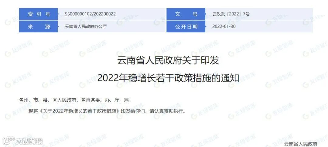 1月30日,云南发布《关于印发2022年稳增长若干政策措施的通知》。支持重点园区优化提升。力争发行不低于200亿元地方政府专项债券,用于标准化现代产业园区建设。对列入园区循环化改造清单的项目,优先争取中央预算内资金支持。选取5个园区开展清洁生产改造先进技术应用示范,每个示范点给予200万元奖励。对成功创建为国家绿色低碳示范园区、循环化改造示范园区、绿色低碳工业园区、生态工业示范园区的,给予一次性500万元奖励。