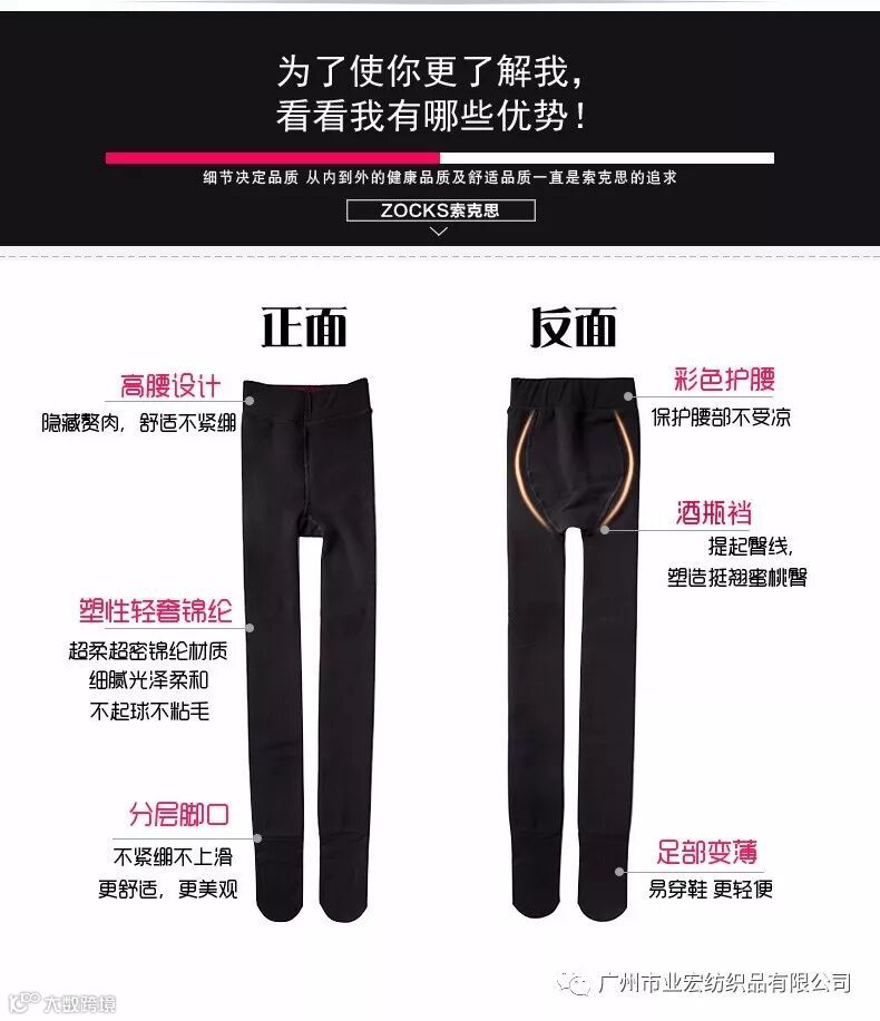 【科普智能大小头】上宽下窄工艺,让袜裤更贴合人体腿型,从而体现腿部的美感,这款腰口还做了加绒处理,是一款很适合我们女性的贴身宝贝哦~