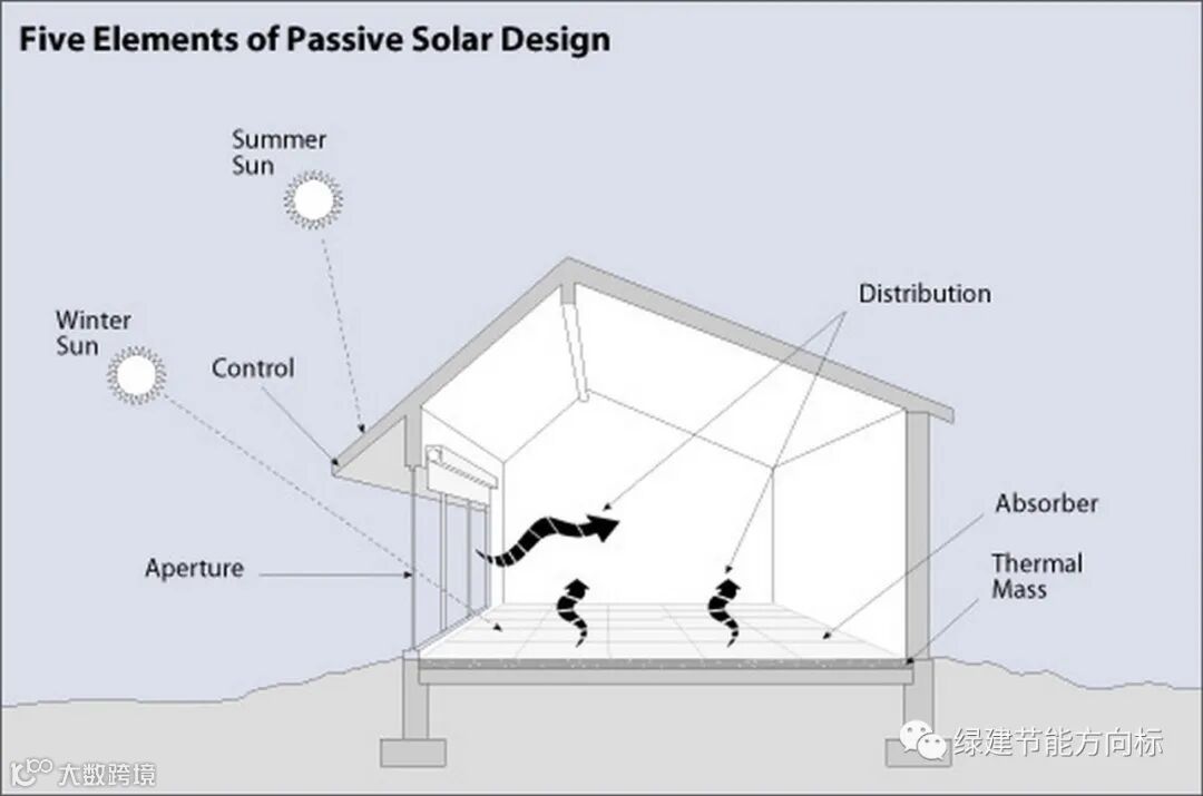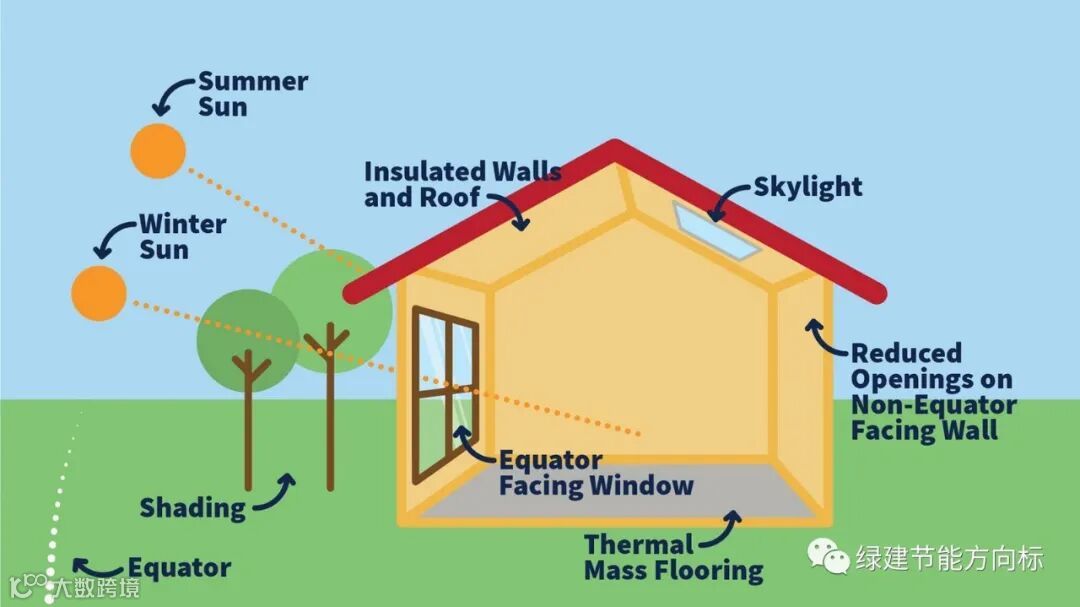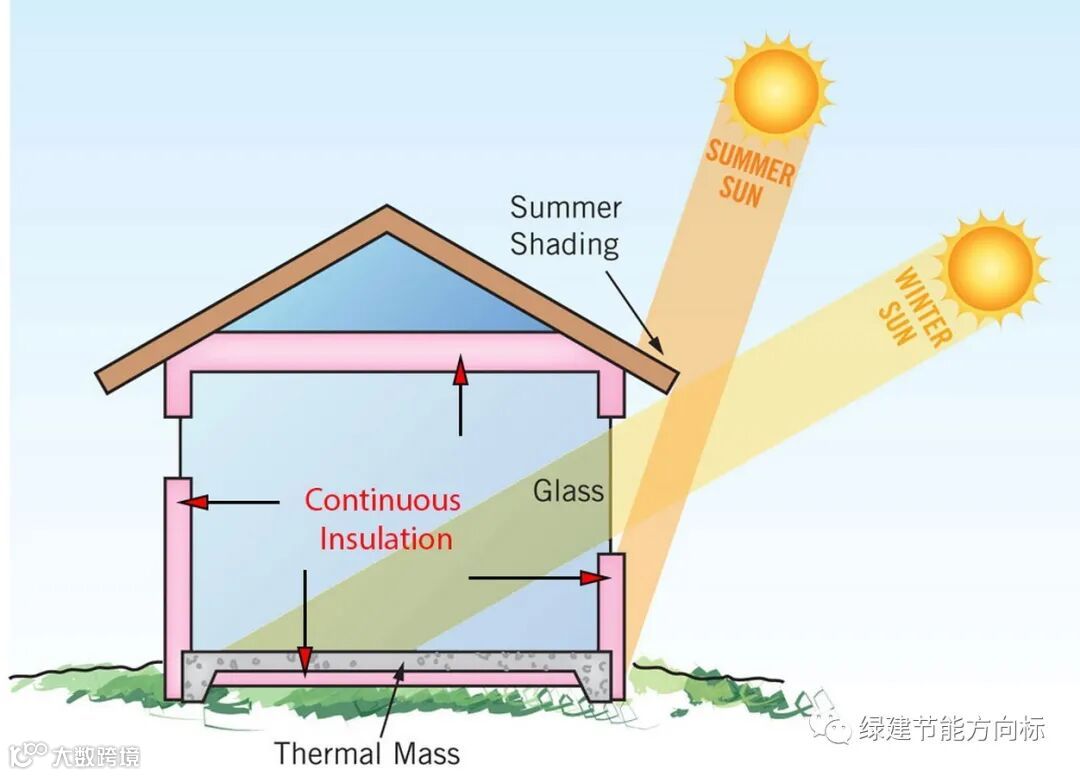 墙壁孔允许阳光直接进入建筑物并加热内部生活空间。面向赤道的窗户专门用于此目的。在北半球,它们以 90 度角放置,面向南方向,以尽可能多地吸收光线。 玻璃窗应隔热良好,以防止热量泄漏到外部。在夏季,防止眩光和过热也很重要。