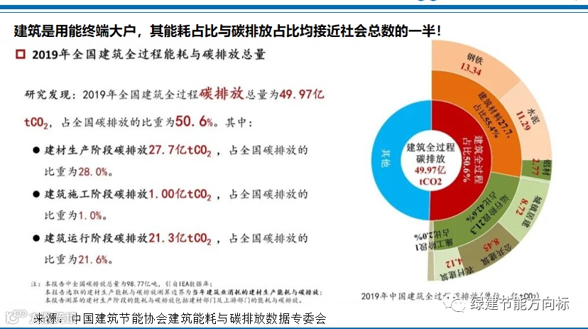 碳达峰碳中和是我们当前的一个重要议题,建筑领域作为社会能源终端大户,其能耗和碳排放占据社会总的比例超过了50%,如果建筑业不努力,我们将拖社会碳达峰的后腿。