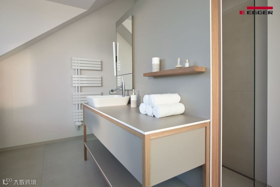爱格板还拥有防潮、耐刮花、 握钉力强等优异的物理性能。 每种性能的背后都有数据的支撑, 比如2h吸水膨胀率为0.2%, 24h吸水膨胀率为6.9%, 这个防潮性数据非常可观! 可放心用于厨房、卫生间等潮湿的室内空间。 而且爱格饰面板表面抗菌性能, 也符合国家检测标准, 细菌在爱格板表面24小时内的死亡率约达99.9%!