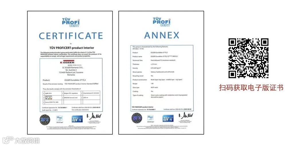 除了甲醛和二甲苯,还有一个大家察觉不到的“隐形杀手”—TVOC。 TCOV——总挥发性有机化合物, 是三种影响室内空气品质污染中 影响较为严重的一种! 它的毒性、刺激性、致癌性和特殊的气味性, 会影响皮肤和黏膜,对人体产生急性损害。 这个容易被人们忽视的室内“健康杀手”, 作为板材供应商的我们, 从未忽视其存在! 此次新增TVOC释放量检测, 检测值仅为0.02mg/m³.h, 同样远低于0.5mg/m³.h的标准值! 而且爱格也一直在行动, 爱格不仅积极参与规范室内空气标准制定, 还通过独立研究机构, 对产品进行标准要求之外的更多检测。 例如德国TüV ProfiCert Interior认证, 爱格通过最新的国际TüV认证, 且符合多顶国际室内排认证标准! △德国TUV检测报告 同时爱格还投资配置现代化的试验设备,不仅用于内部管理品控,也用于产品研发和改进。 爱格会定期按照最新标准对其产品所含的VOC进行检查,即使产品含量不会对消费者健康造成危害。
