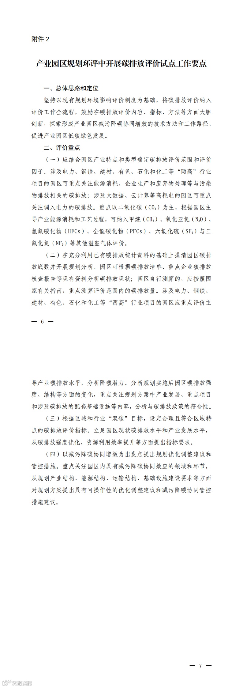 2.产业园区规划环评中开展碳排放评价试点工作要点