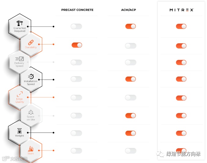 面上满足客户的美学需求,同时价格方面具有竞争力的解决方案,这是一种可以与铝复合金属(ACM)或预制混凝土板等传统覆层产品竞争的技术。
