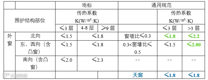1)非透光外围护结构传热系数限值按楼层划分,楼层范围仅以3层为界限;