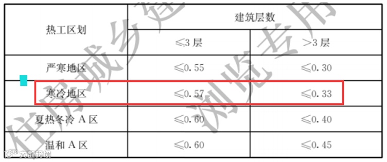 图5 通用规范严寒和寒冷地区居建体形系数限值