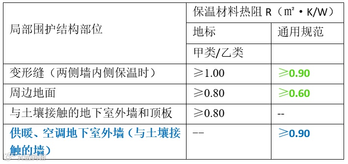 图7局部围护结构保温热阻限值对比