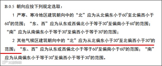 对设计的影响:建筑指北针角度超过30°后,有可能出现计算书无南北向外窗外墙的情况,被划分到东西两个朝向当中进行统计和判定。