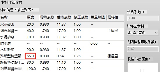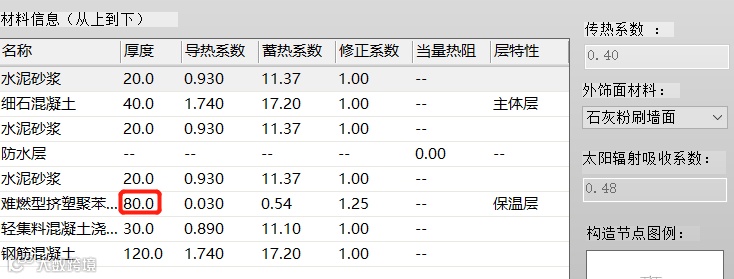满足通用规范:屋面难燃型挤塑聚苯板厚度为80mm,屋面传热系数K为0.40[W/m2·K]