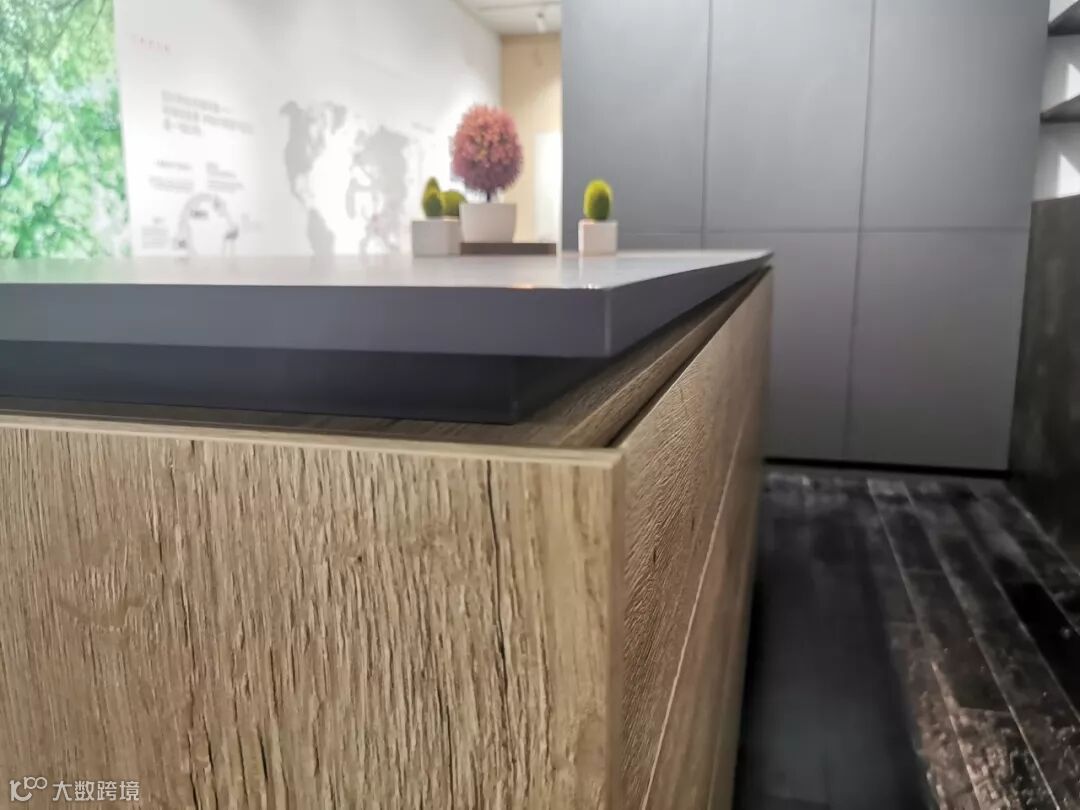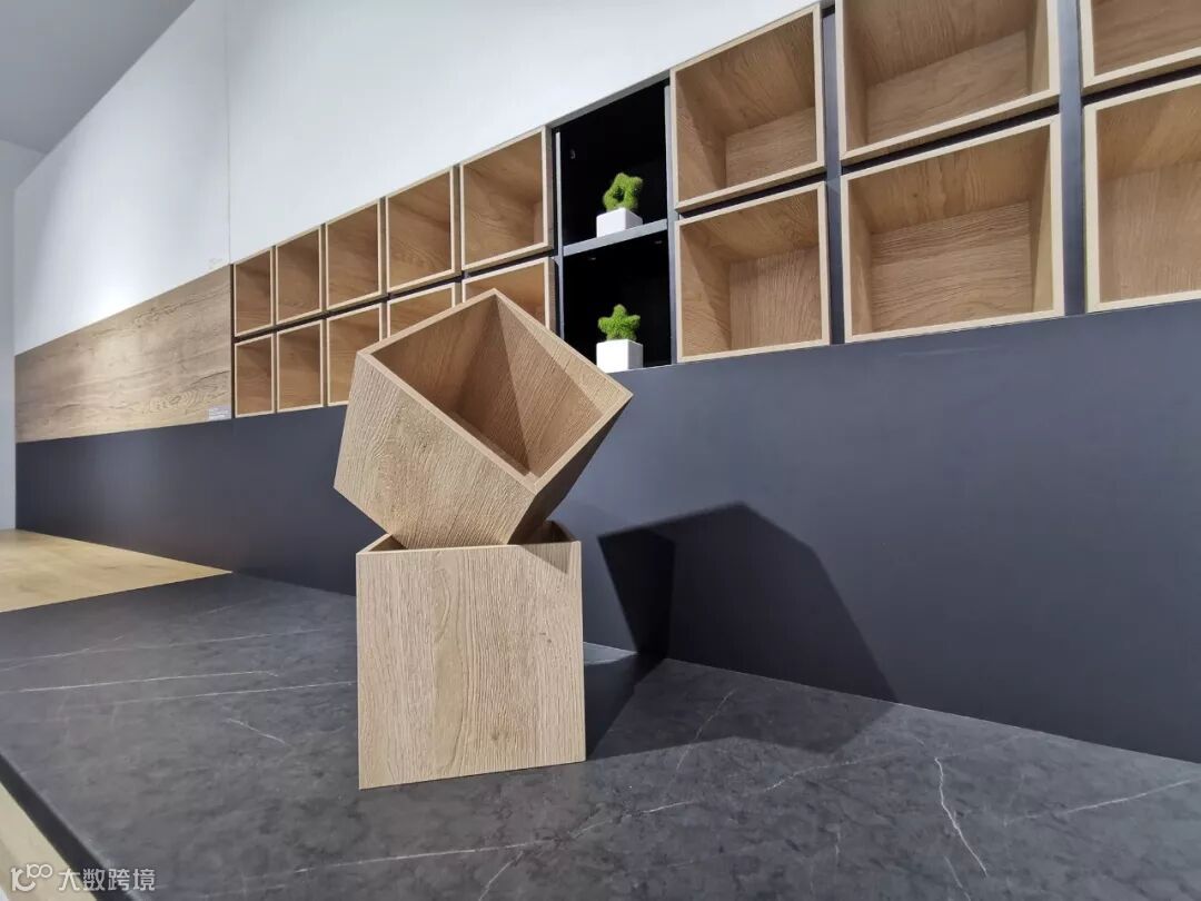 爱格别具设计感的展架设计,可以很好的彰显每一种产品的特点与品质,上图从左到右分别展示了爱格同步木纹系列产品,兼具质感与美感的台面板和缔造完美细节的封边带产品。不同产品花色可以完美匹配,应用于橱柜、衣柜等定制产品中,整体的设计感会更好。