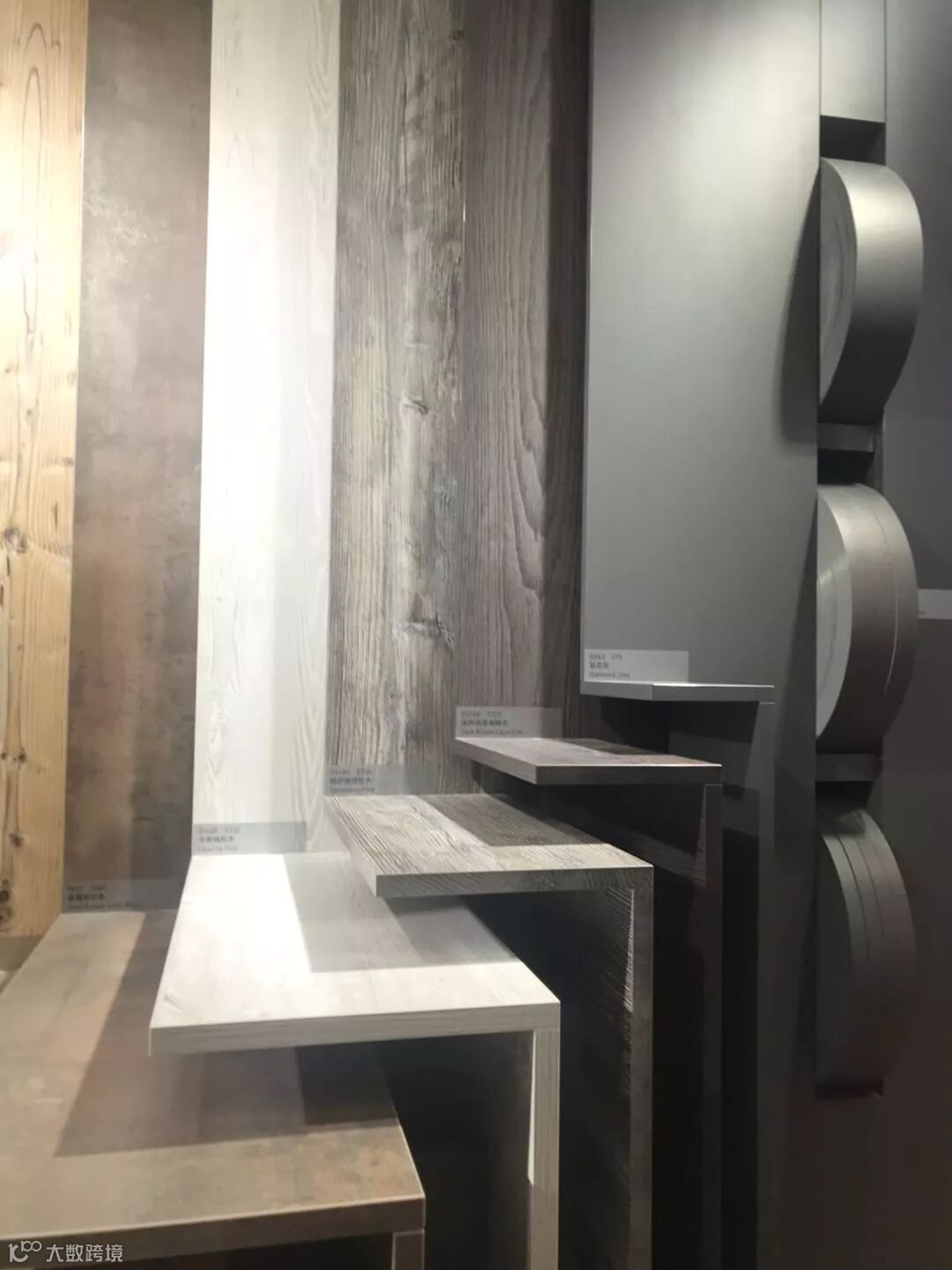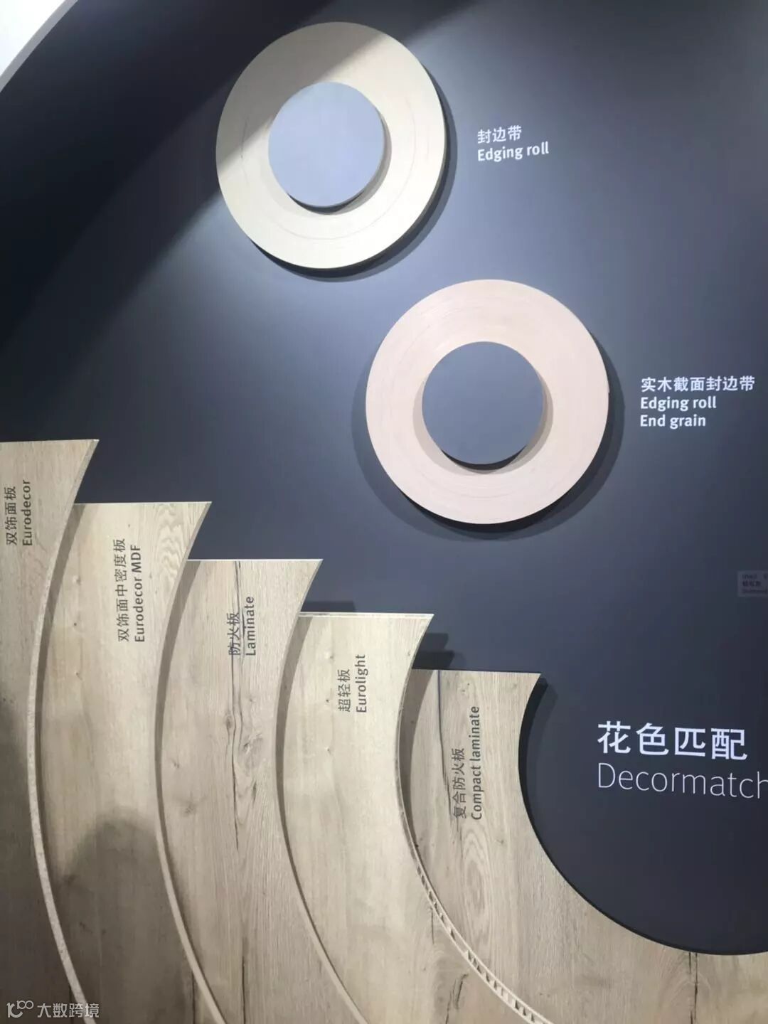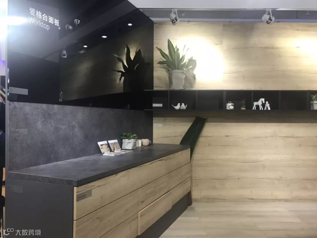 此次爱格主要展示的有:爱格同步木纹系列产品、极致系列产品,台面板、防火板,还有配套的封边带产品。