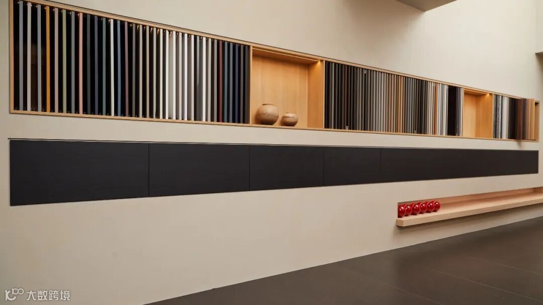 在展示花色的同时,设计师还巧妙的加入了工艺品的展示,能更好的突现出柏丽迪品牌的高端定位。
