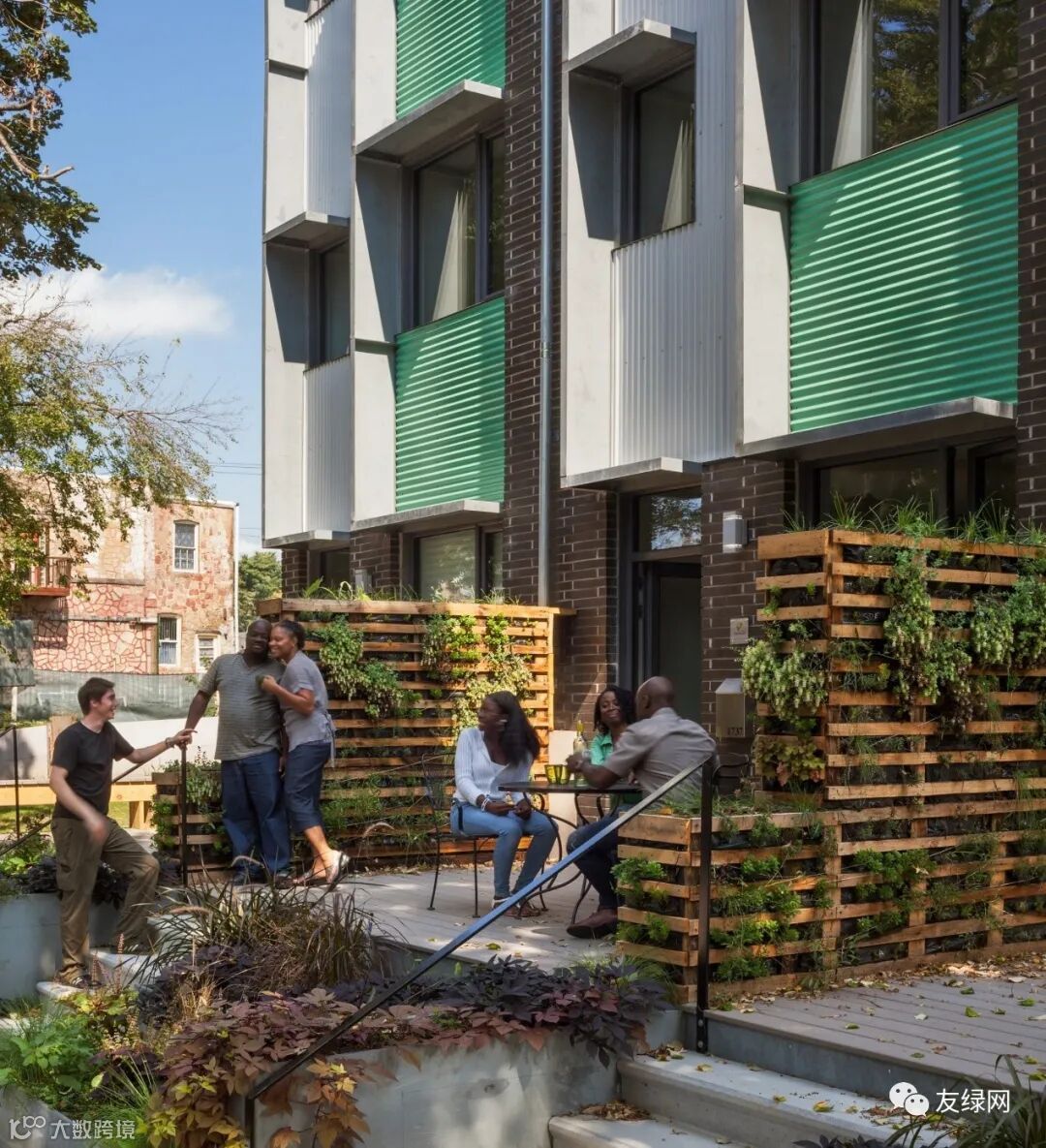 在北费城的洛根社区,开发商 Onion Flats 设计并建造了三座178 平方米的联排别墅。