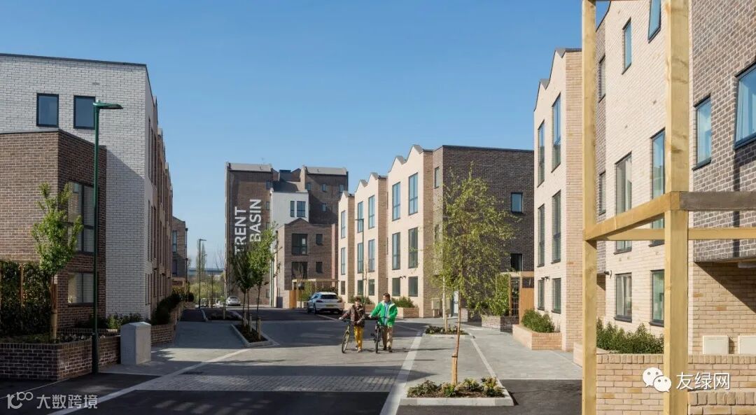自行车停车场可以很方便地内置在建筑庭院和公共区域中,而停车场则搬到了更远的集中区域,以进一步鼓励骑自行车和散步。”