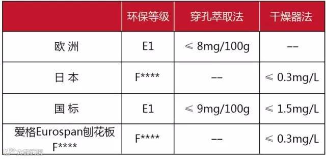 2004年国家标准《胶合板》(GB/T9846.1- 9846.8-2004)中,首次标示了E0甲醛释放量≤0.5mg/L(干燥器法)的限量级别。该级别是目前我国人造板及其制品中甲醛释放限量的最高标准,但该标准目前只用于木地板。