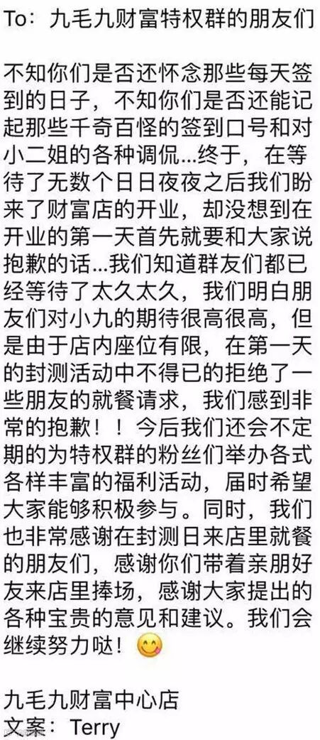 比如帮九毛九给粉丝写 “情书”