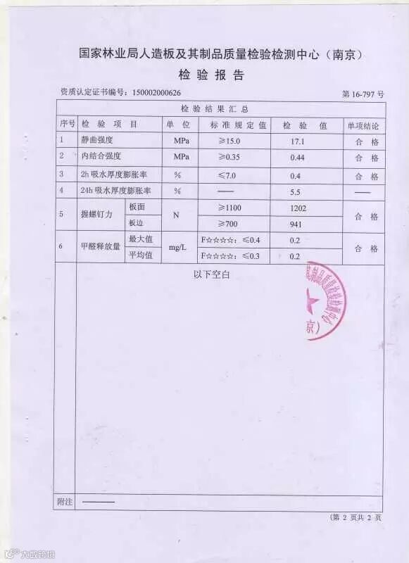 检测结果公正、权威,爱格板不仅在甲醛释放量达到国内外最高标准,物理性能也一样是最好的,24小时的吸水澎涨率是5.5%,防潮性能好,还有家具厂关心的握钉力,板边为:941N,板面为:1202N,固定力强,钉子不易松动脱落。