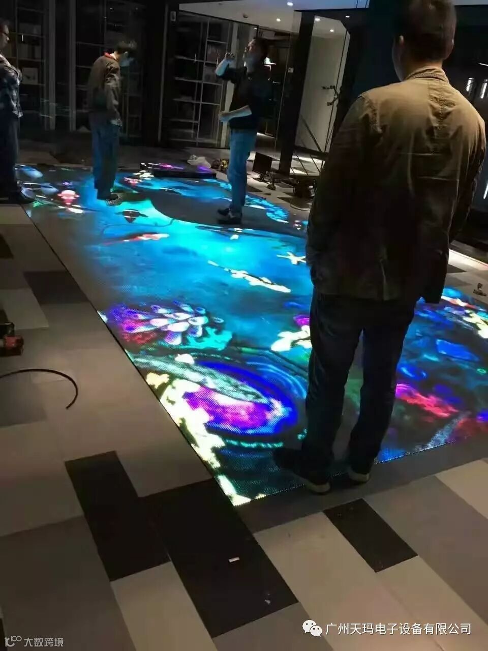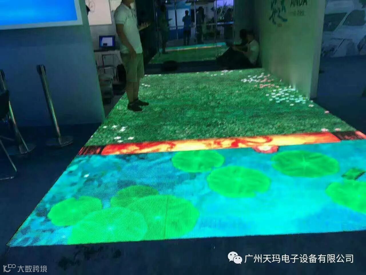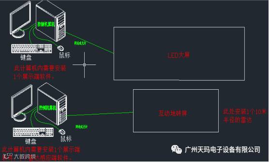 2 大尺寸互动,最多可支持70米半径,可以在任意不规则的水平面或者有倾斜角度的水平面,可以多通道级联(红外框必须是规则的)