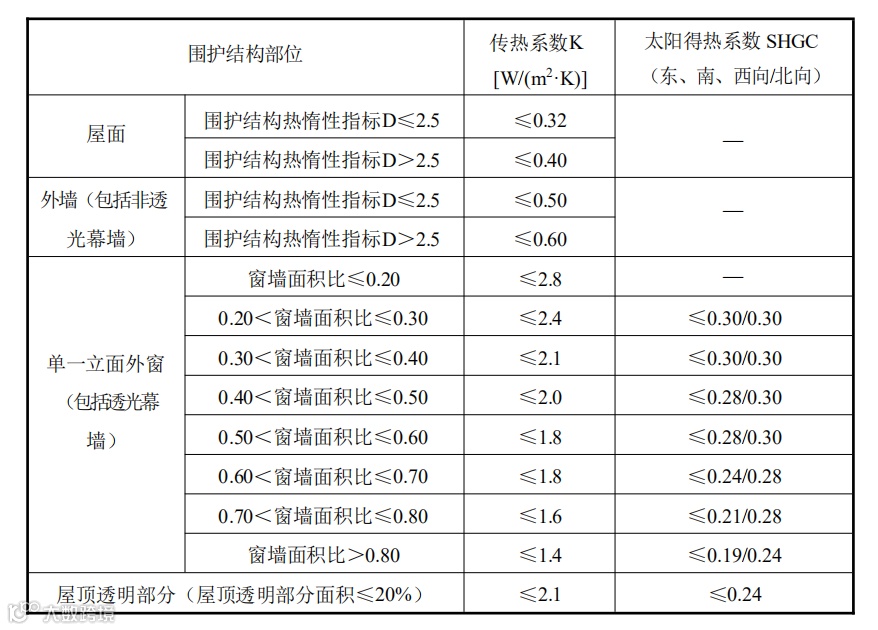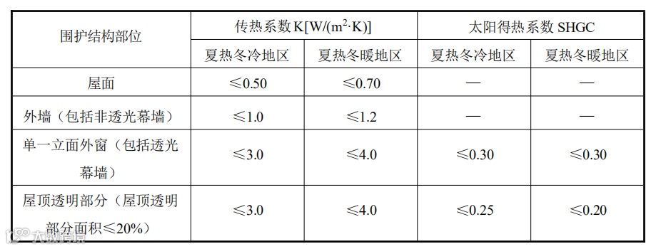 5)新增夏热冬冷地区、夏热冬暖地区乙类公共建筑围护结构热工性能高要求值。