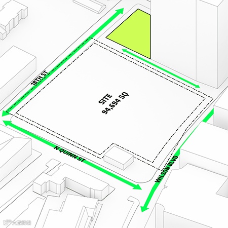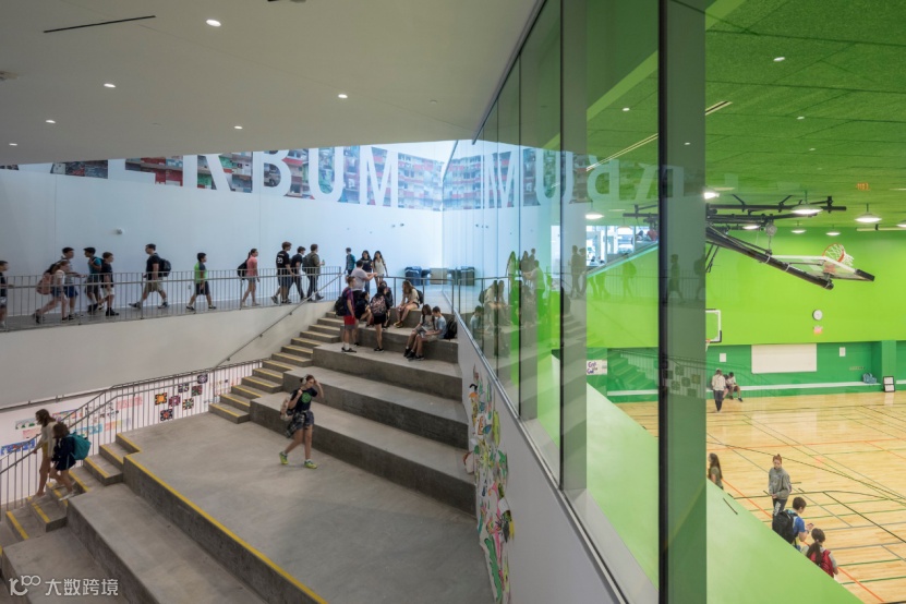 上图是BIG在阿灵顿设计的中学。BIG选择在场地北侧设置操场,与北侧的公园呼应;体量整体趋势避让了基地西南角的7-11便利店,逐层展开、落地形成多个入口空间和退台空间;形体旋转后,利用高差获得了若干内部大空间。