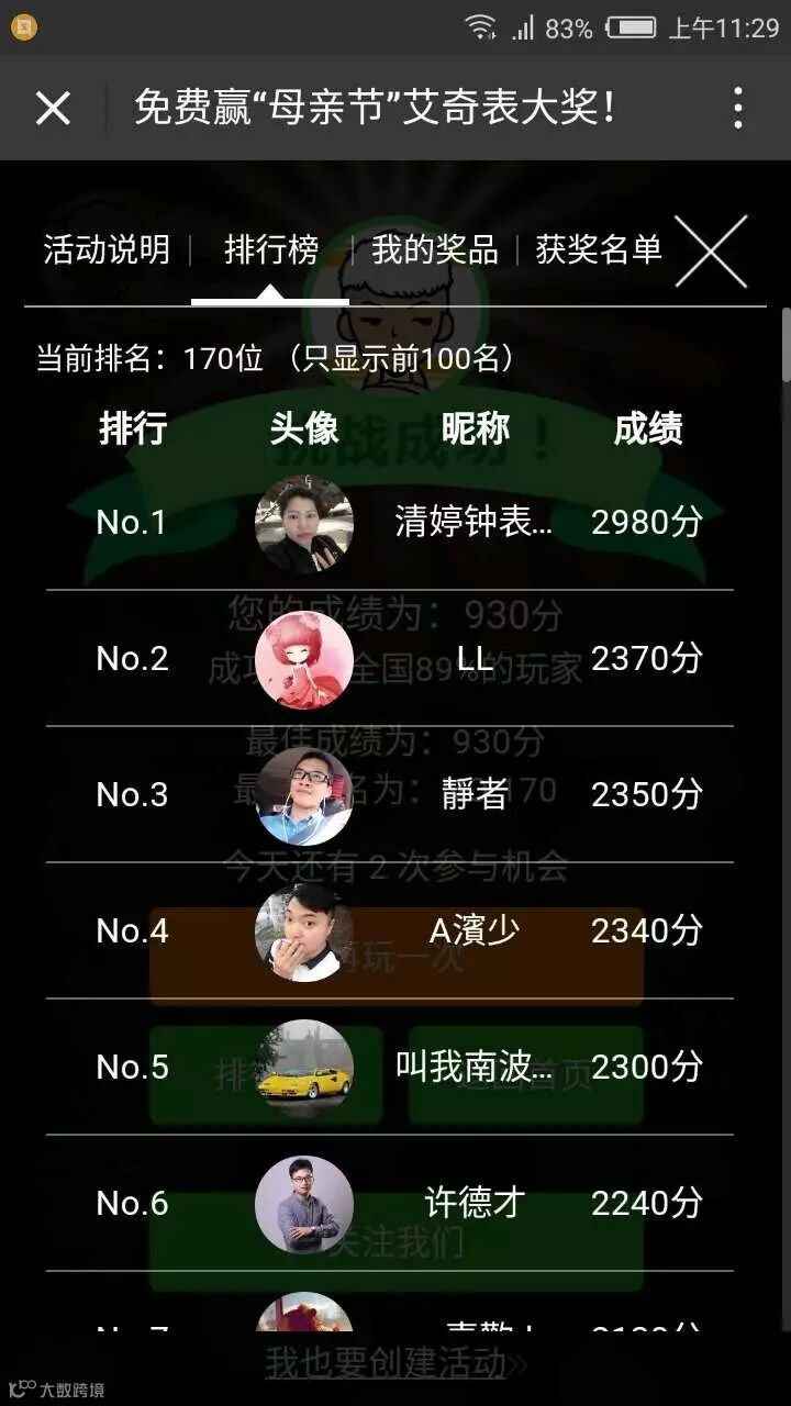 活动结束后,系统会自动按照成绩排名,第1名为一等奖,第2-4名为二等奖,第5-10名为三等奖,第11-510名为幸运奖。