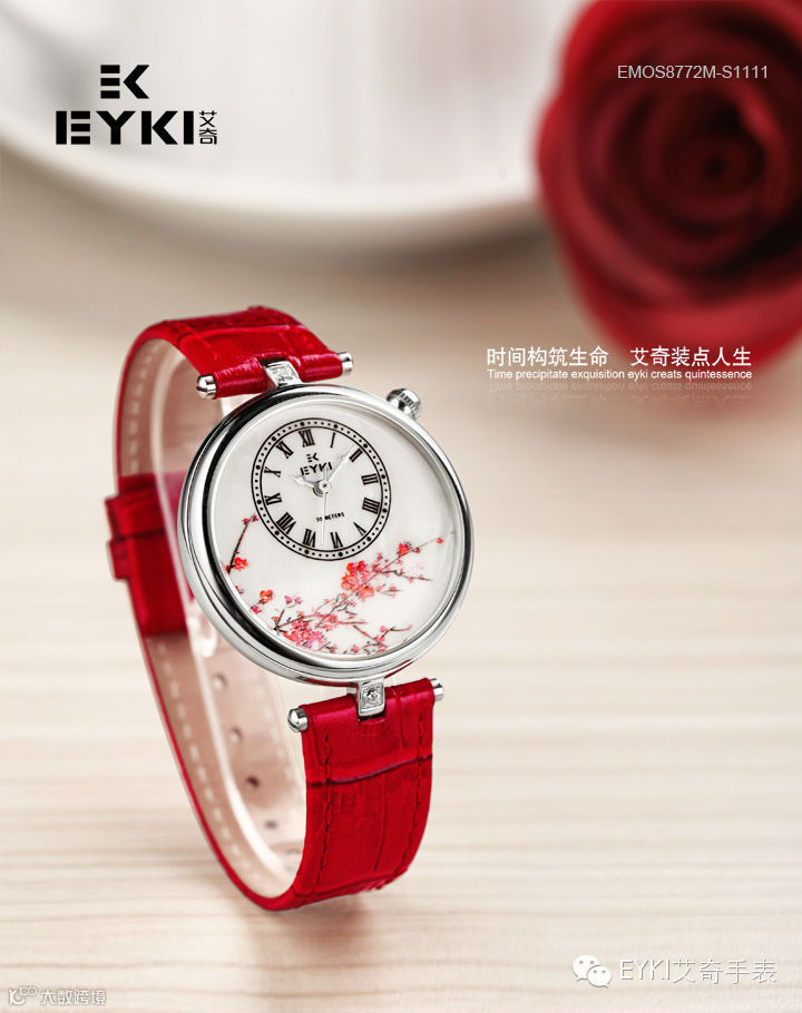 梅花以它的高洁、坚强、谦虚的品格,给人以立志奋发的激励。艾奇(EYKI)工匠们将俏丽的梅花浓缩进了全不锈钢的经典圆形表壳中,富有立体感的视觉效果,画面精致,令人动容;加上珍珠贝母独一无二的幻彩,犹如一件精美的艺术品。