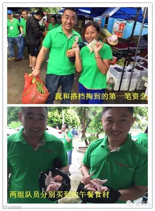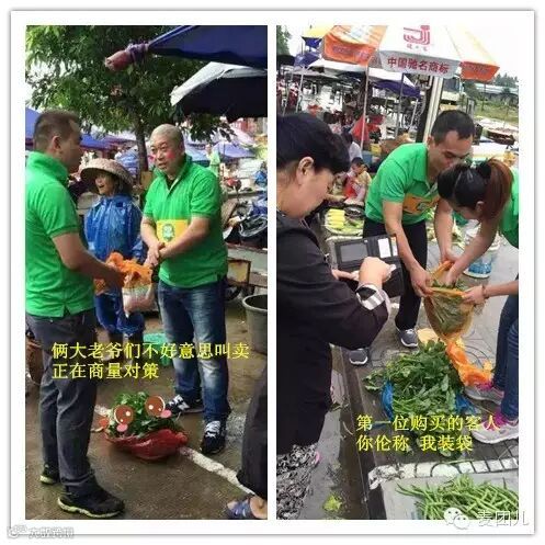 拎着采好的新鲜蔬菜,两人一组(门店经理+厨师长)的搭档们高兴地出发了
