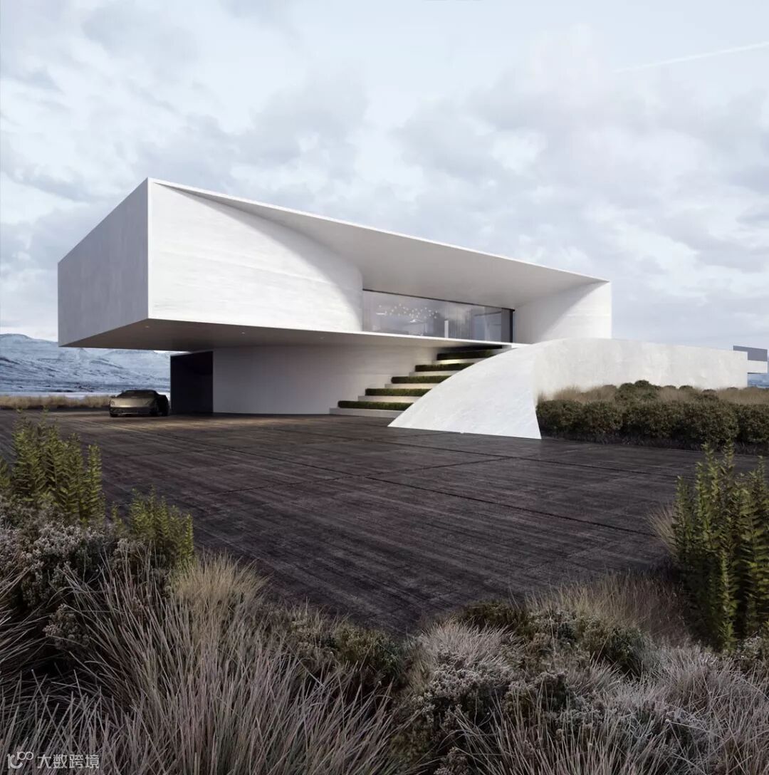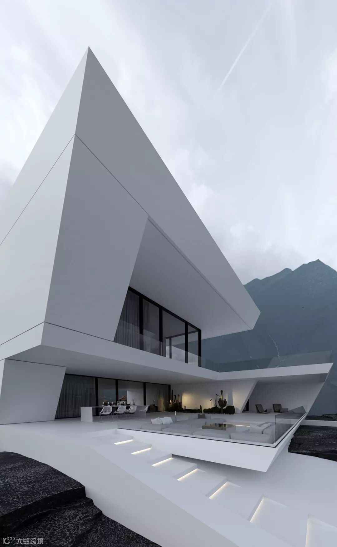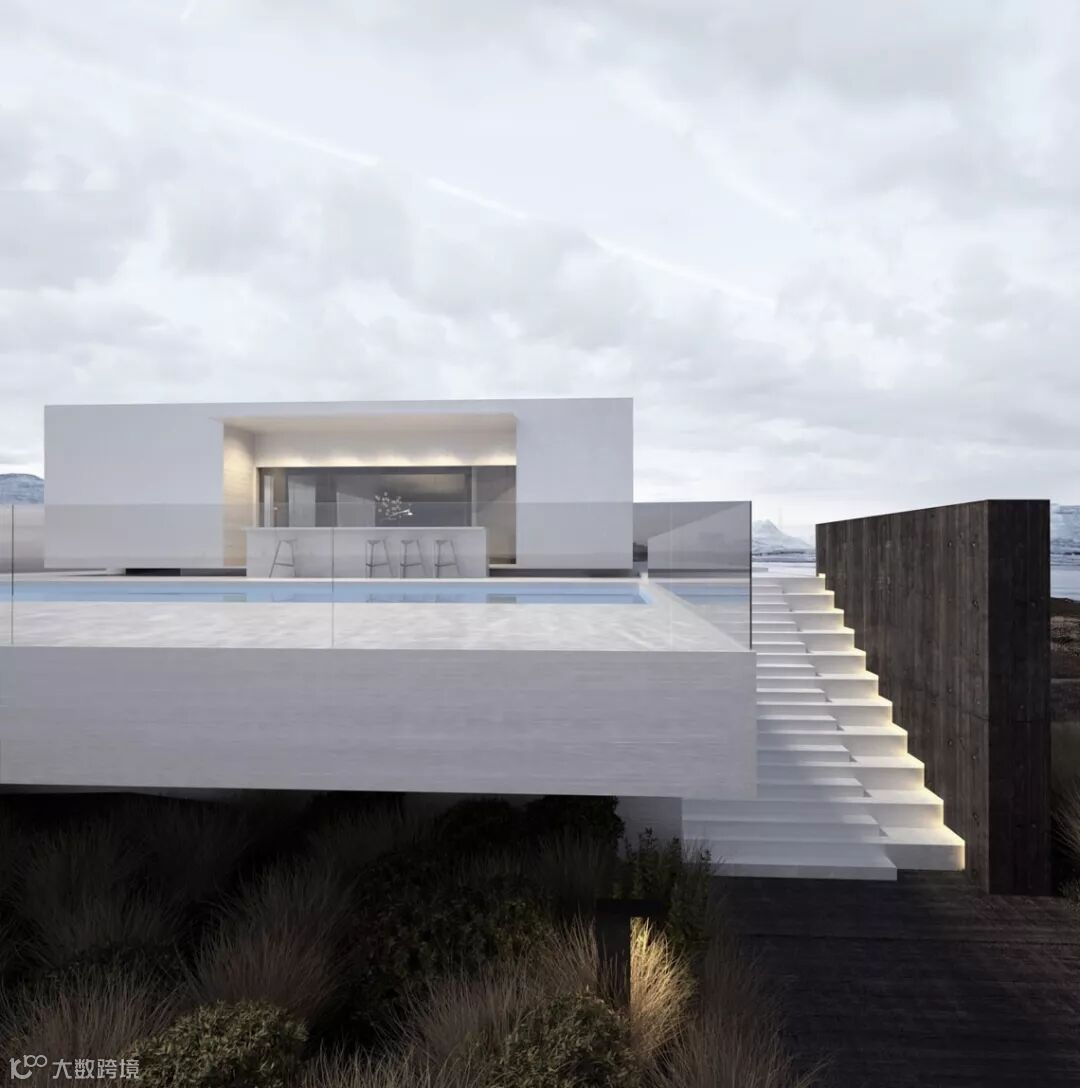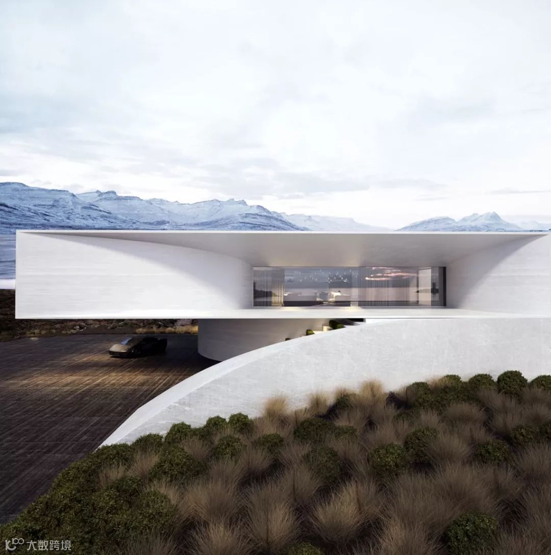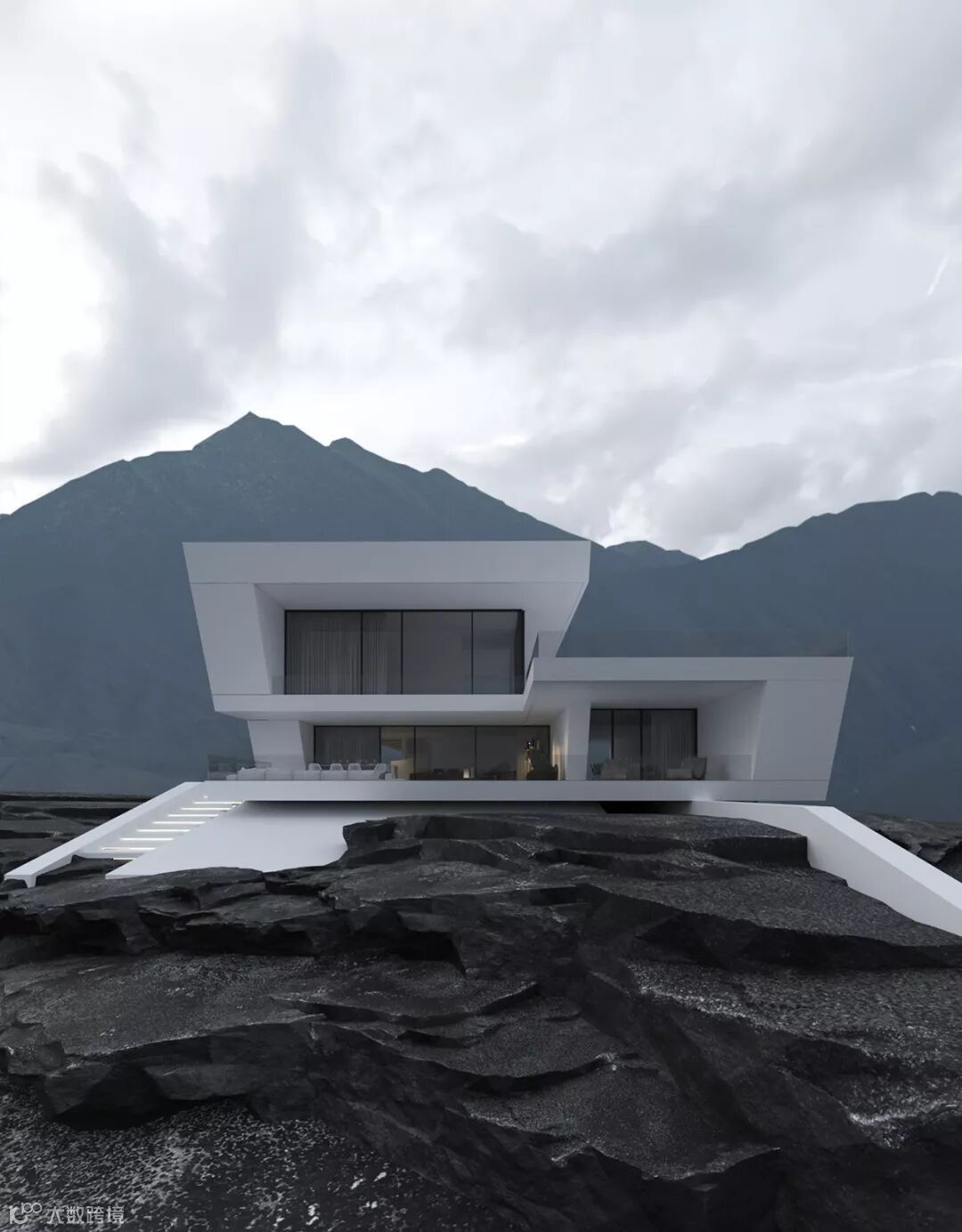 在黑色岩石上的白色房子,简洁时尚的线条突出了建筑的美感▽