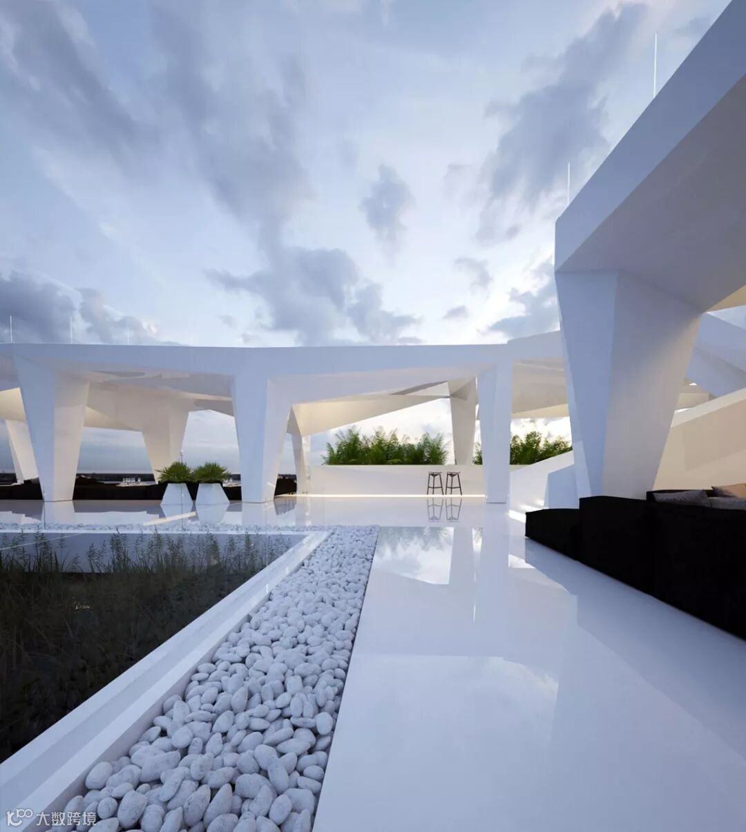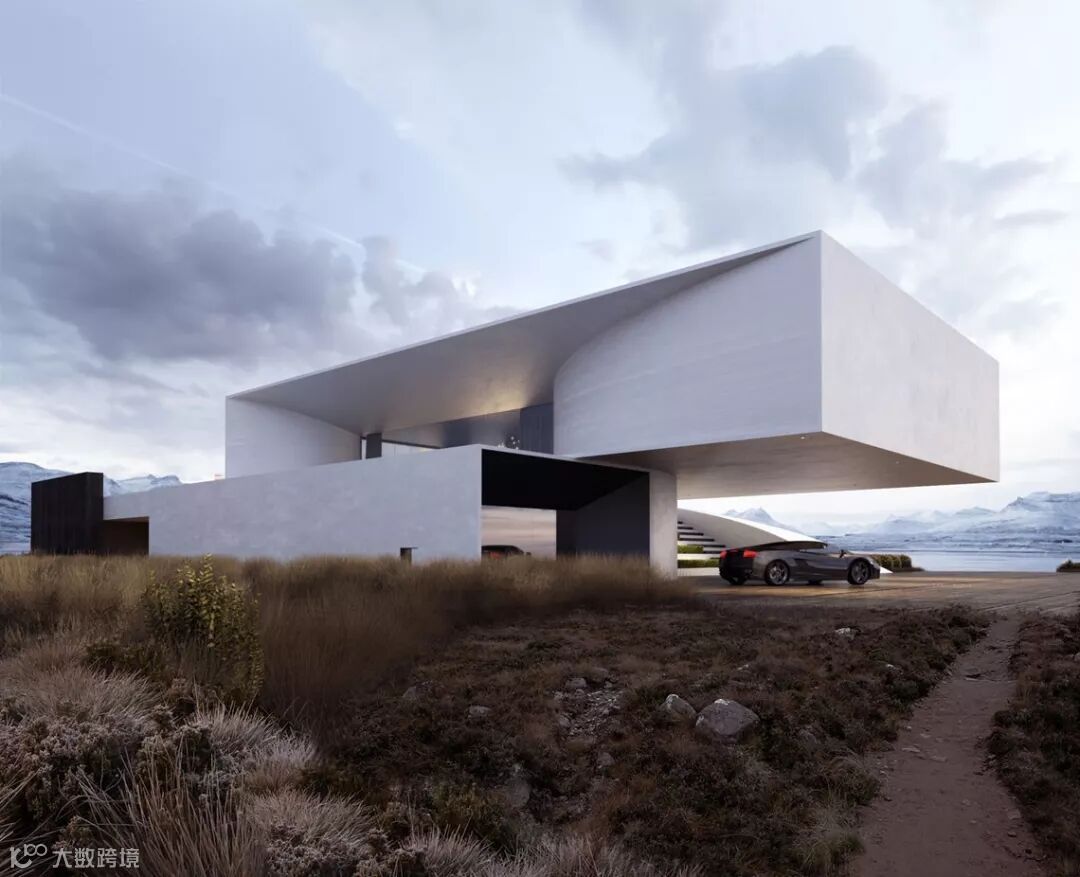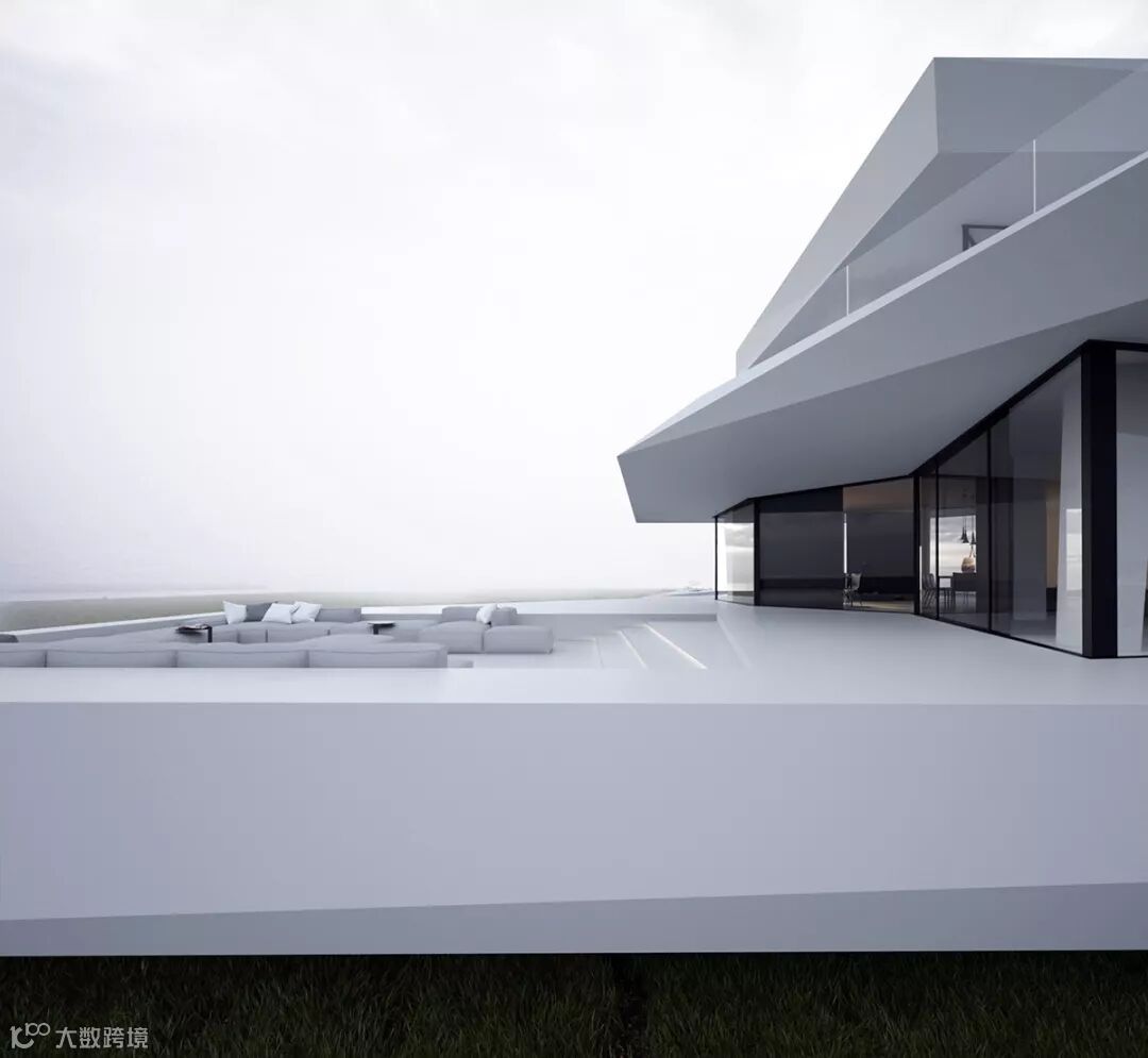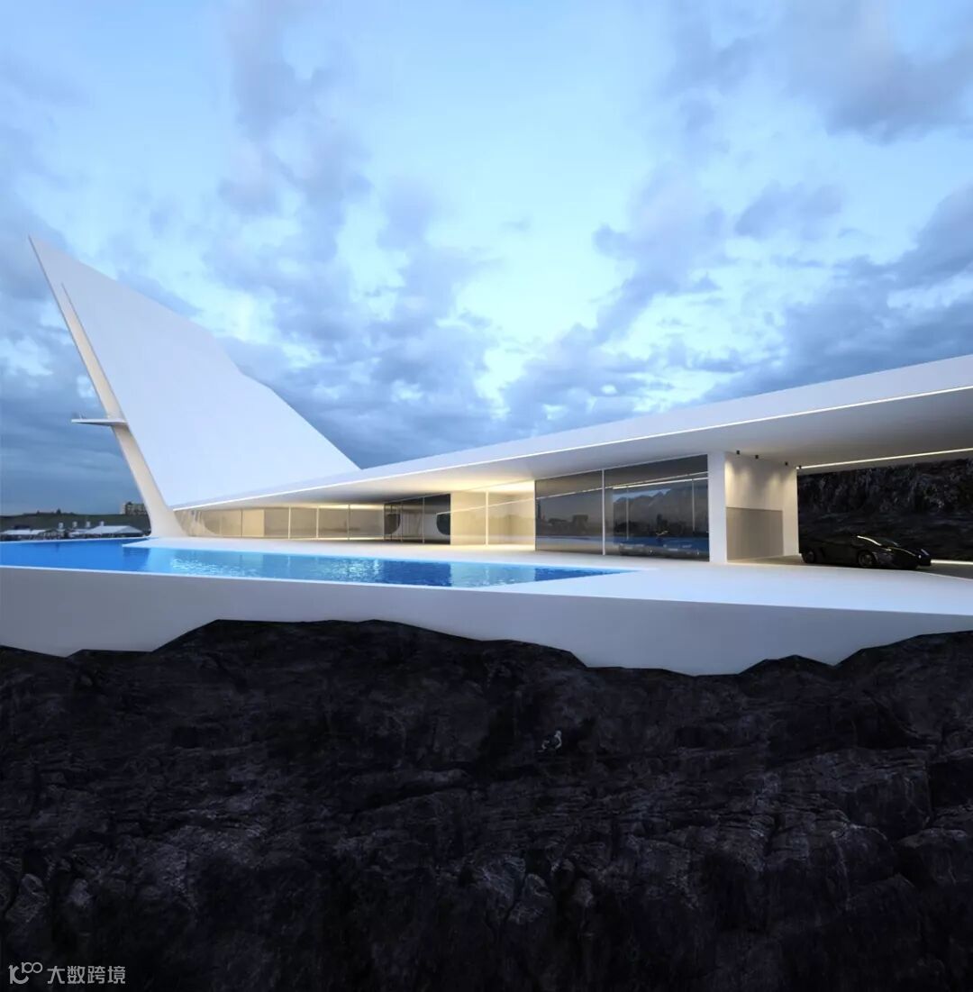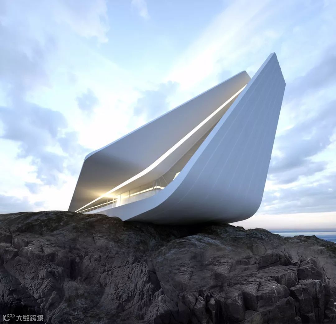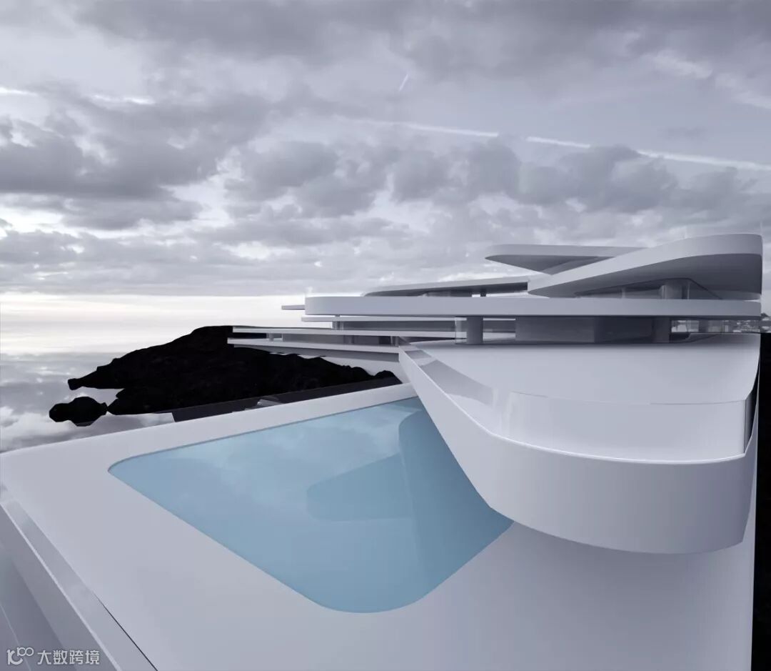 在黑色岩石上的白色房子,简洁时尚的线条突出了建筑的美感▽