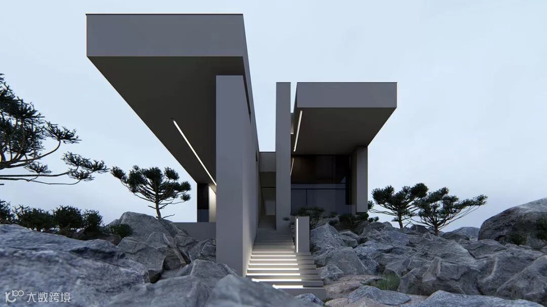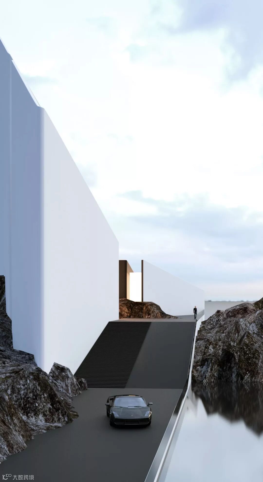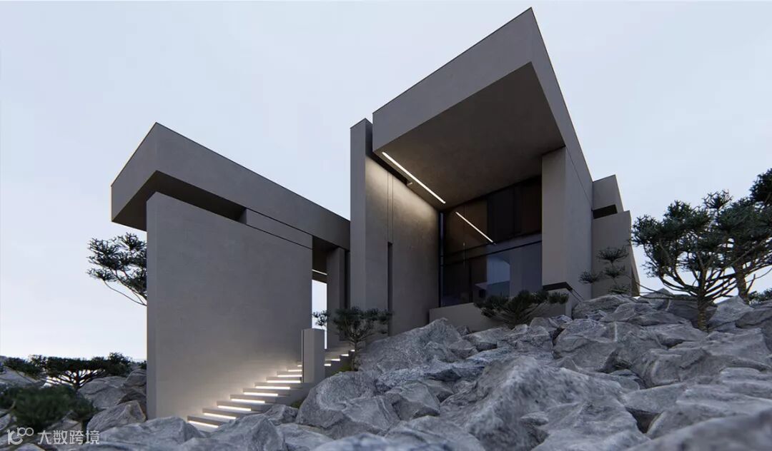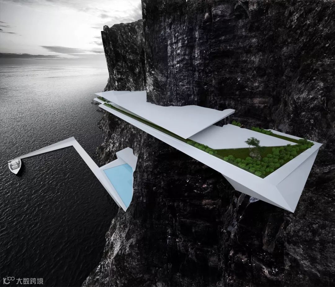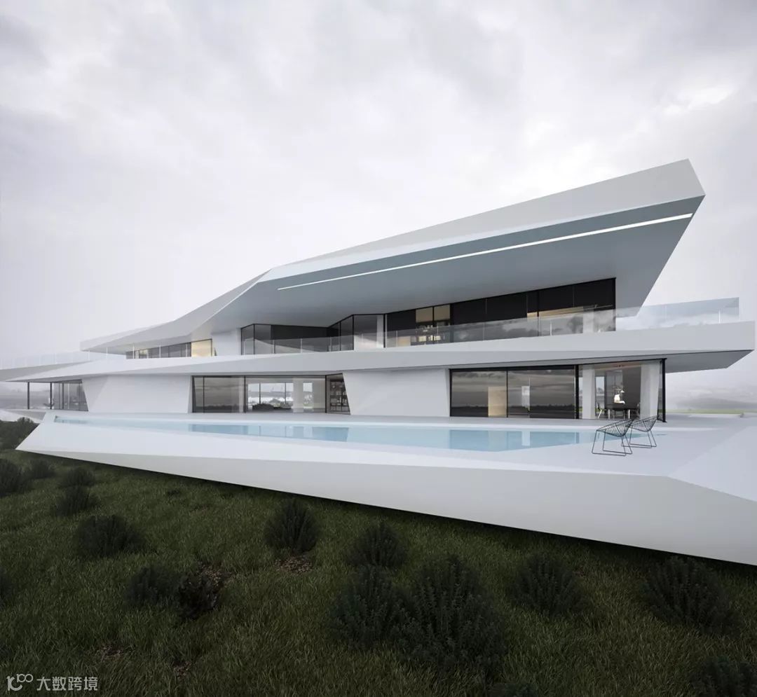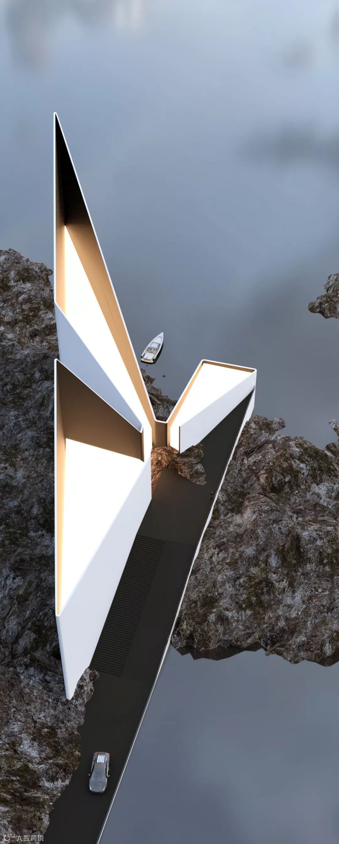 在黑色岩石上的白色房子,简洁时尚的线条突出了建筑的美感▽