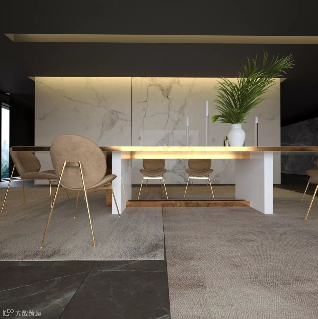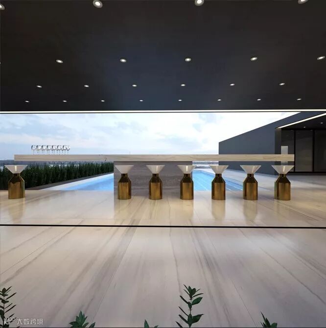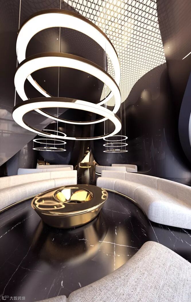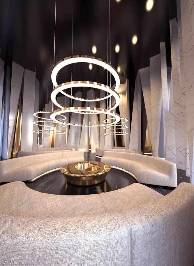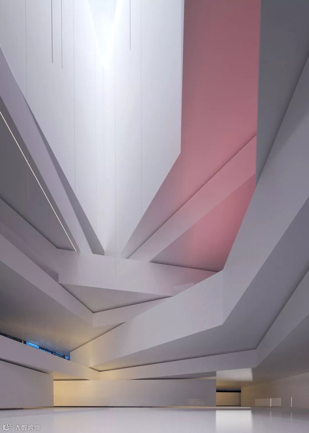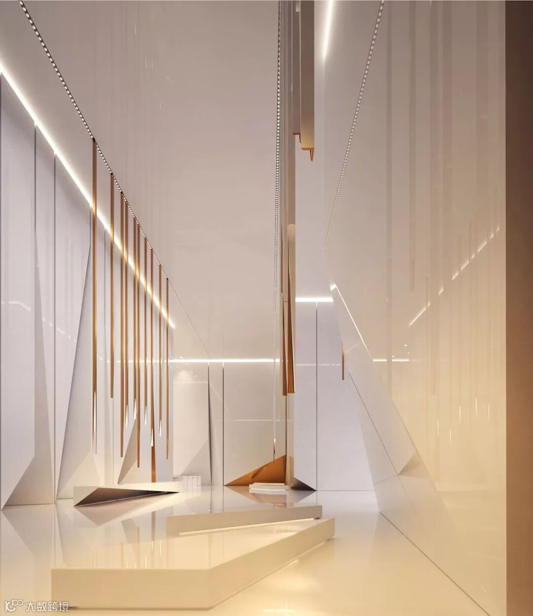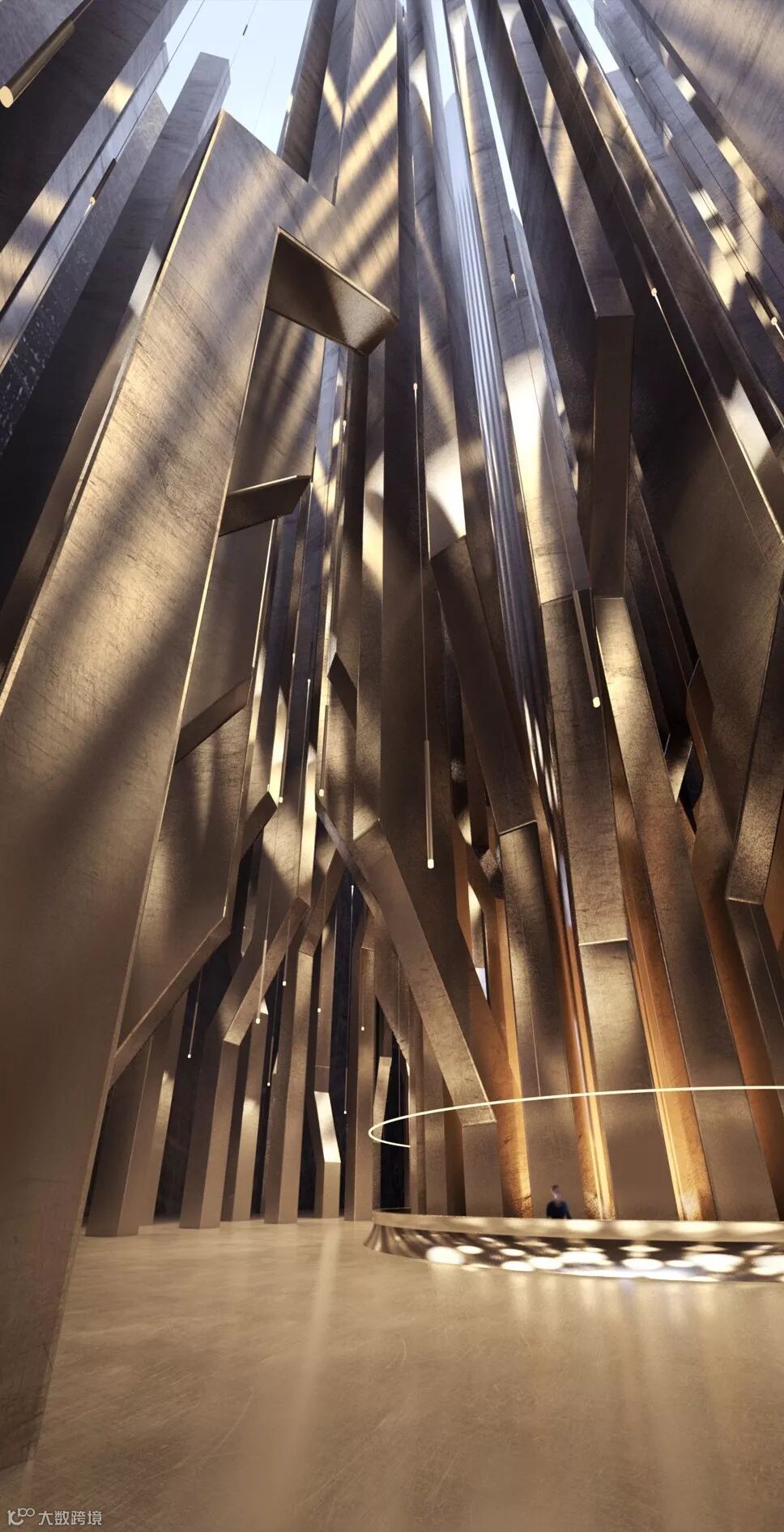 酒店大堂的几何形柱子、灯光、色彩,完美展现了简约空间的张力▽