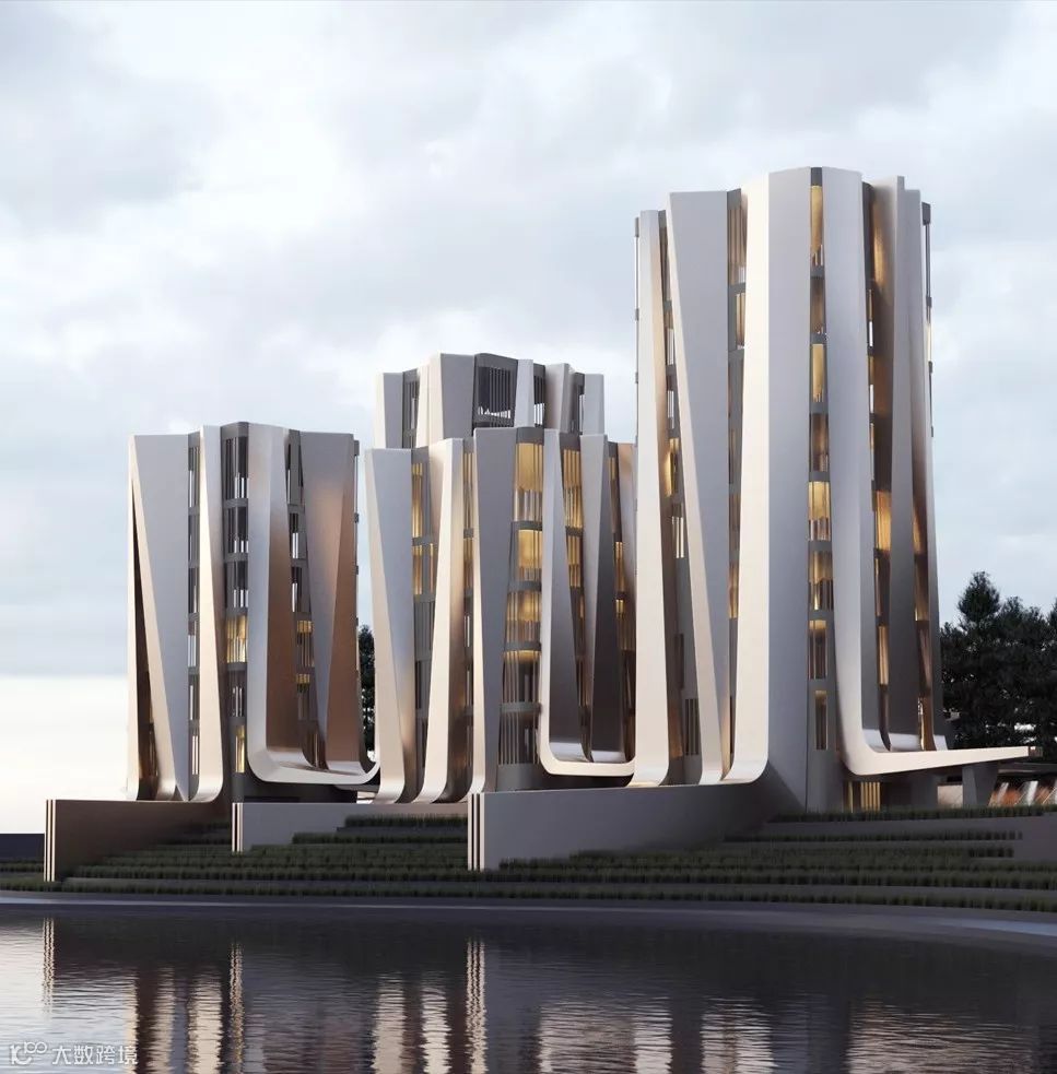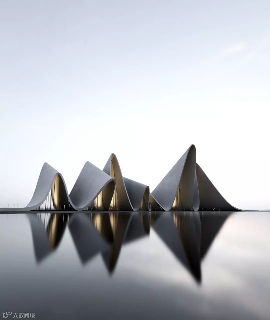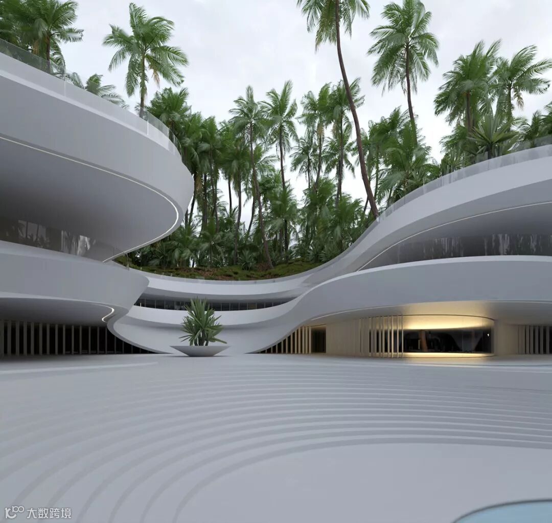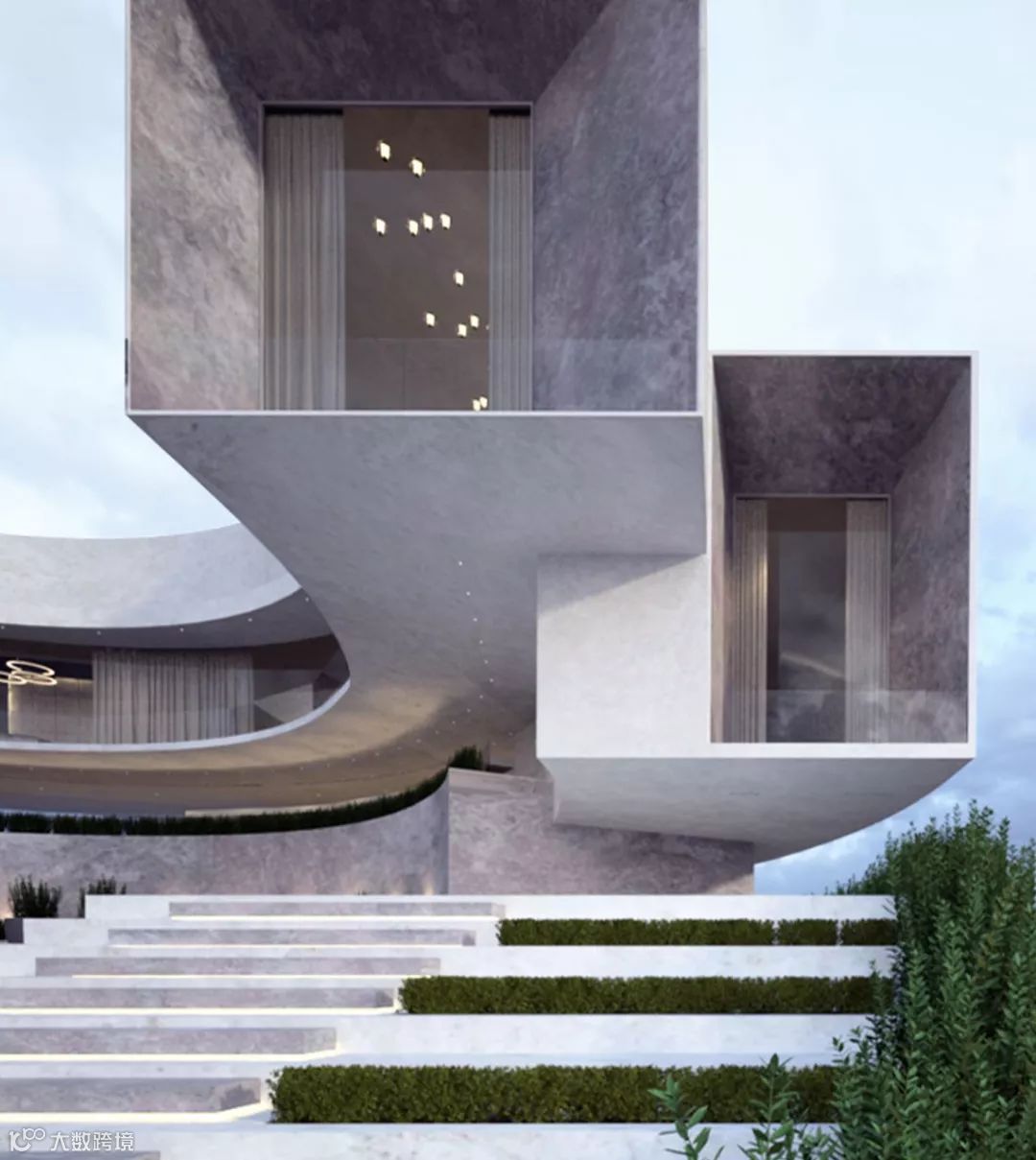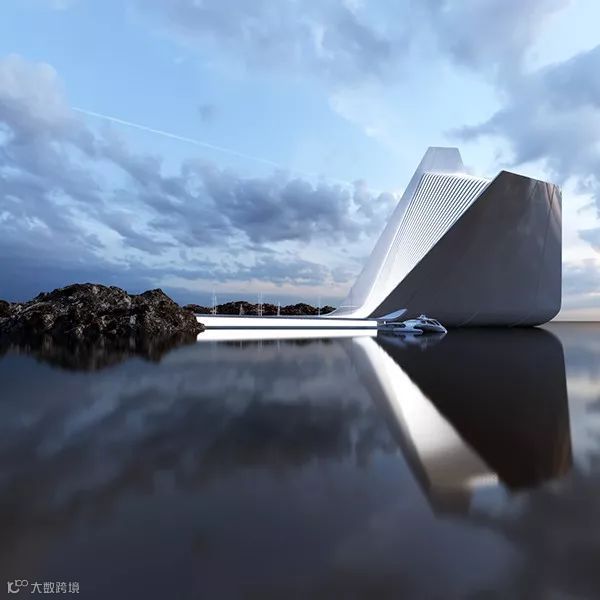 礁石旁悬挑的住宅,层层曲线犹如海水拍打在礁石上激起的浪花▽