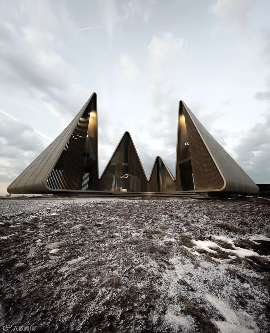 这个抽象的房子外观设计成山的形状,将自然和人造结构完美结合,这样几乎疯狂的想象力让人印象深刻▽