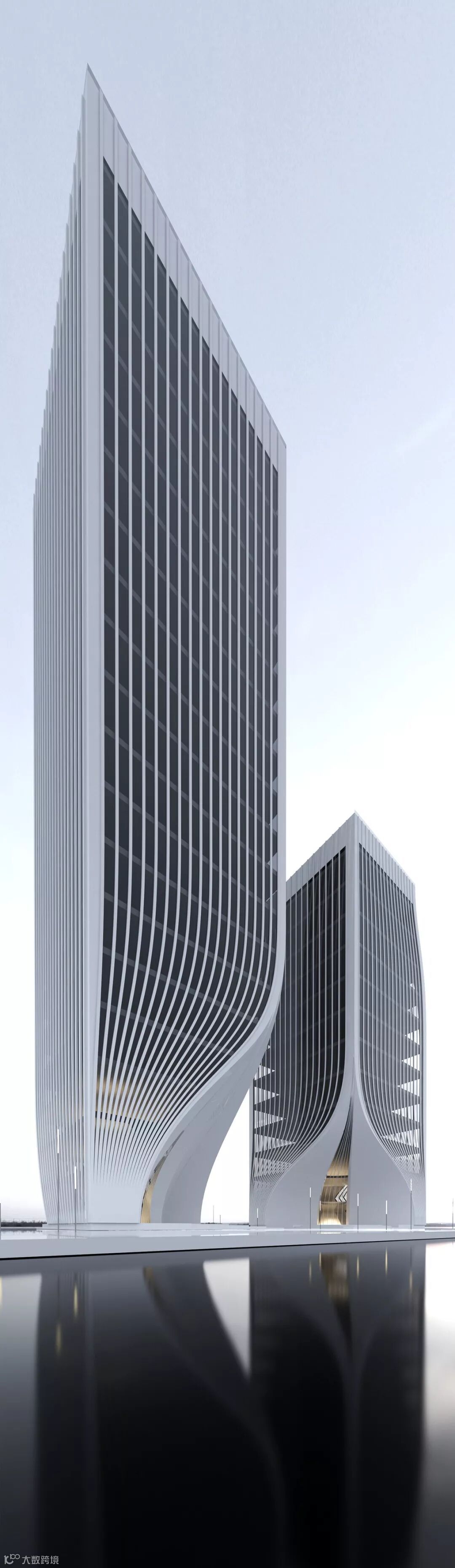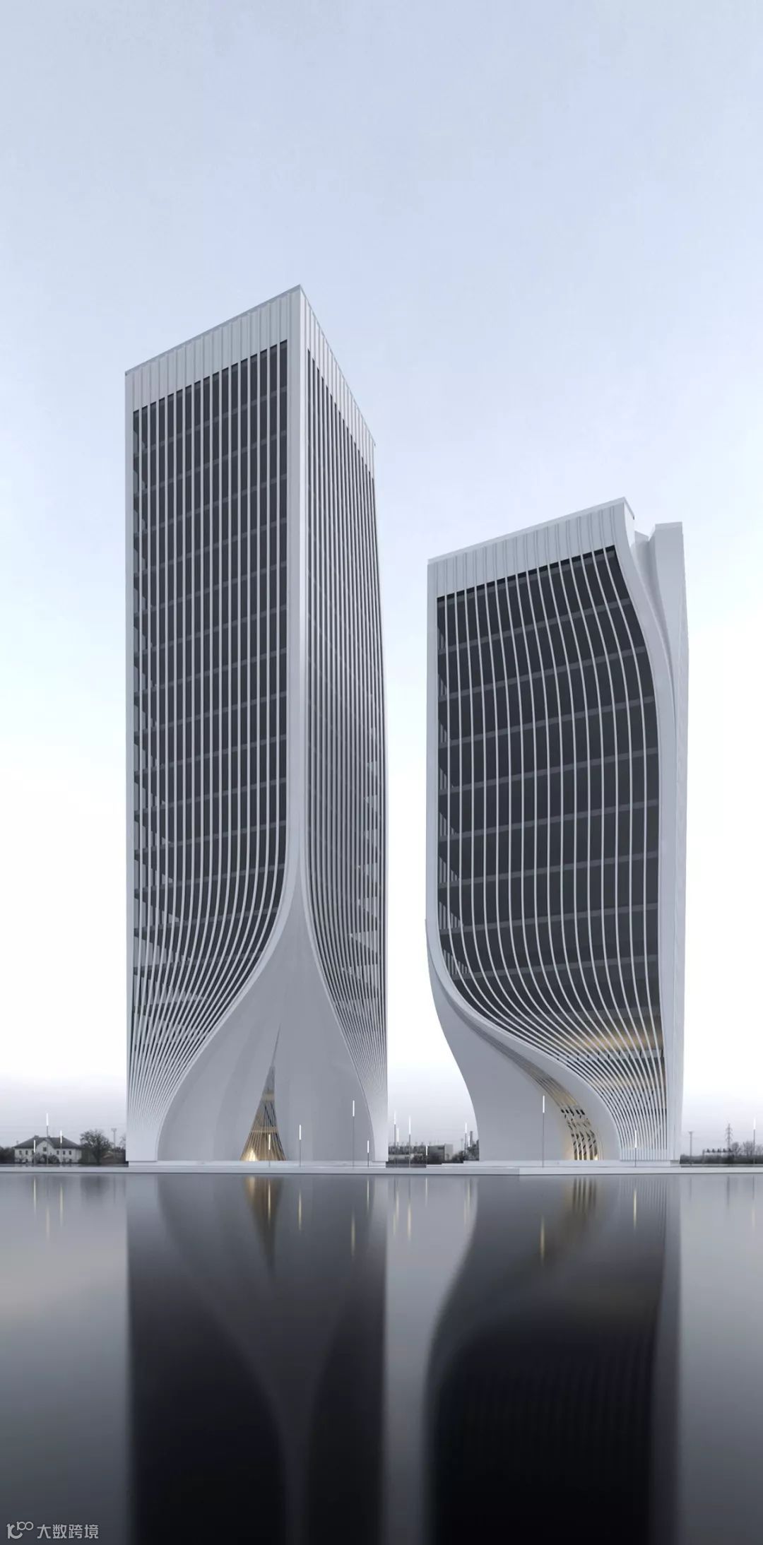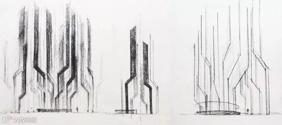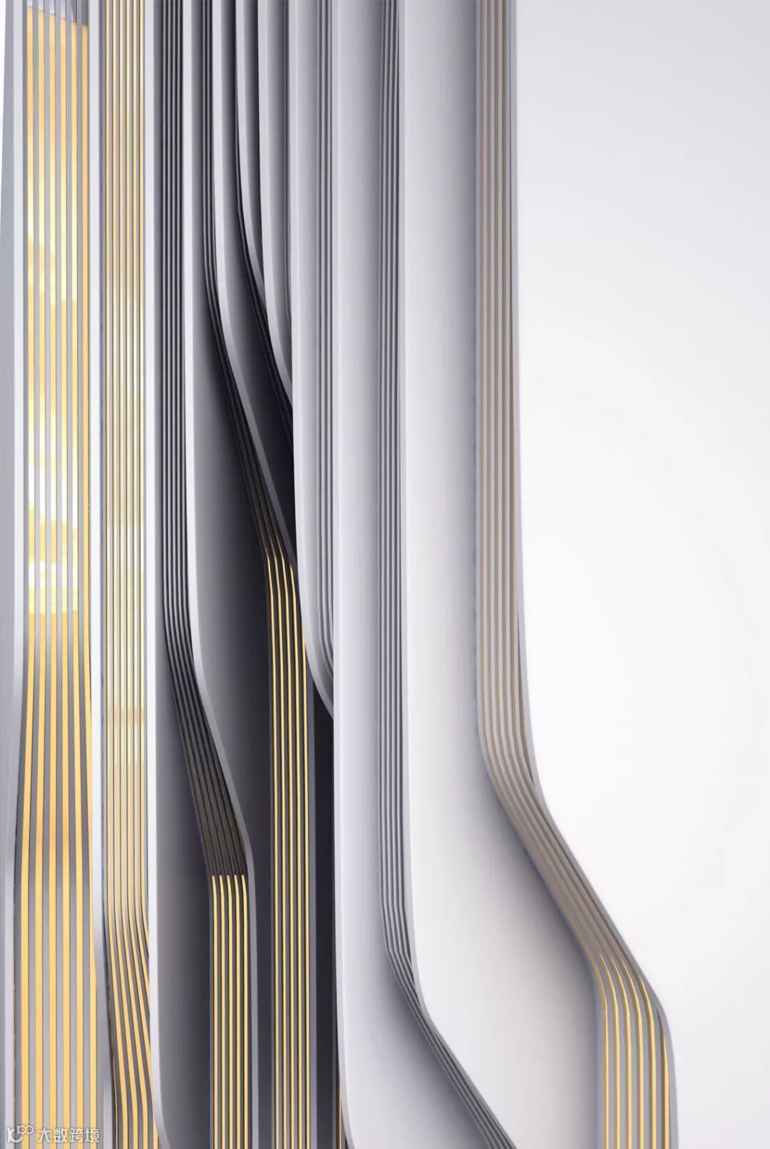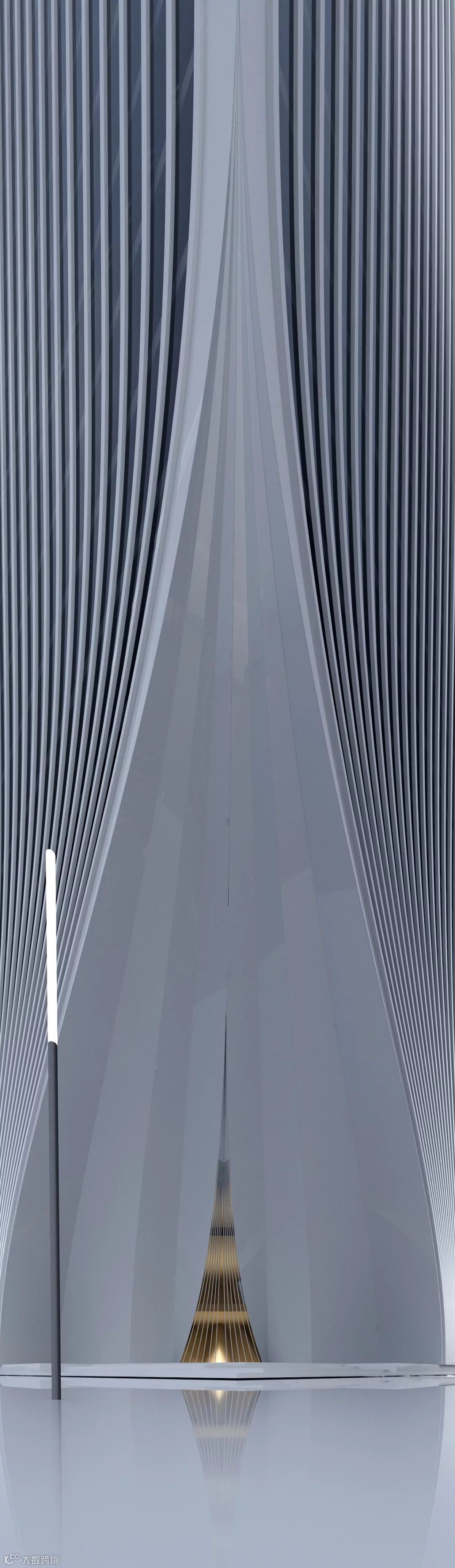 利用线条的张力,支撑起近百米高的建筑,下窄上宽的圆柱形设计极具震撼▽